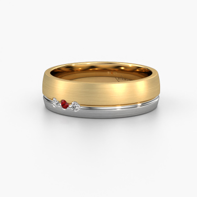 Quelle belle combinaison de deux métaux précieux, qui se renforcent si joliment dans le design contemporains de cette bague ! Notre orfèvre pense qu'il est spécial de créer pour vous une alliance unique que vous avez composée vous-même. Chaque bague que nous fournissons est fabriquée à la main dans notre propre atelier. Cela permet de réaliser tous vos souhaits pour votre bague personnelle qui convient à votre style. Dans cette alliance contemporains WH0322L25AM, un rubis ronds est serti et il à une largeur de ±6 mm et une finition mate/poli. Vous pouvez assembler cette alliance pour dames dans de différentes combinaisons de métaux précieux, celle-ci étant dotée de la combinaison d'or 14 Carat et d'or blanc. Dans notre équipe spécialisée, le créateur de bijoux crée votre alliance dans un dessin 3D. Si vous le souhaitez, vous pouvez également commander une alliance factice pour pouvoir la voir et l'ajuster à l’avance. Notre orfèvre travaillera ensuite à la main dans notre atelier pour fabriquer avec précision votre bague unique. Il effectuera un travail très soigné, car la fabrication et la finition nécessitent un oeil vif. Et voici la beauté de notre métier, car à la fin de notre travail votre alliance sera le fruit d’un véritable chef d'oeuvre accompli avec passion !Laissez-vous faire inspirer par nos designs et personnalisez-les selon vos goûts : plus large ou plus petit, brillant ou mat ? Pas de problème ! Même si vous avez des idées pour vos propres alliances spéciales, nos designers de bijoux sont prêts à vous aider à concevoir la bague de vos rêves. N'hésitez pas à nous contacter !En combinant nos techniques modernes avec l'artisanat ancien, nous pouvons concevoir et personnaliser les bijoux de la plus haute qualité avec le plus grand soin pour vous au meilleur prix. Nos [typetr_pluriel] sont toujours 30 % moins chers que ceux des autres bijoutiers. Nous fabriquons des alliances sur commande, ce qui nous évite d'avoir un stock important.Pour vous faciliter la tâche, vous pouvez facilement nous retourner tout bijou commandé dans les 30 jours suivant la livraison.
