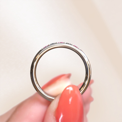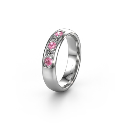 Cette alliance classiques pour dames est une magnifique alliance qui scelle votre amour. Une alliance intemporelle, avec des saphirs roses spécialement choisis. Dans cet exemple d'alliance WH0111L35BP forgée en or blanc de ±5 x 2 mm, un saphir rose ronds de 2.7 mm est utilisé. Nos orfèvres utilisent les techniques les plus modernes, combinées à l'ancien artisanat des orfèvres, et fabriqueront votre alliance dans notre propre atelier. De cette façon, vous recevrez Une alliance unique faite à la main, finie dans les moindres détails et parfaitement en accord avec votre style. Choisir une alliance n'est pas quelque chose que vous voulez faire rapidement. En fin de compte, vous voulez porter une bague qui correspond exactement à votre style et à vos souhaits. Et cela reflète aussi votre amour et votre relation l'un avec l'autre. Une bague qui doit être portée toute votre vie et qui symbolise tout ce qui vous relie. C'est pourquoi nous aimons tellement le fait de pouvoir fabriquer exactement la bague que vous avez en tête. Tous les bijoux sont fabriqués à la main dans notre propre atelier, afin que nous puissions traiter chaque détail de manière très précise. Il n'y a pas de meilleur métier !Avez-vous des souhaits particuliers concernant votre alliance, mais vous avez des difficultés à trouver le design sur notre site Web ? Donc assurez-vous de contacter nos designers ! Par exemple, nous pouvons rendre l'anneau plus étroit ou plus large. Préférez-vous une finition mate ? Nous pouvons faire cela ! Les gravures sont un excellent moyen de personnaliser vos bagues et s’appliquent à la plupart des designs. Ou bien, si vous avez une idée de vos propres alliances extraordinaires, contactez-nous ! Nos designers sont prêts à relever le défi de concevoir la bague de vos rêves !En combinant nos techniques modernes avec l'artisanat ancien, nous pouvons concevoir et personnaliser les bijoux de la plus haute qualité avec le plus grand soin pour vous au meilleur prix. Nos [typetr_pluriel] sont toujours 30 % moins chers que ceux des autres bijoutiers. Nous fabriquons des alliances sur commande, ce qui nous évite d'avoir un stock important.Pour vous faciliter la tâche, vous pouvez facilement nous retourner tout bijou commandé dans les 30 jours suivant la livraison.
