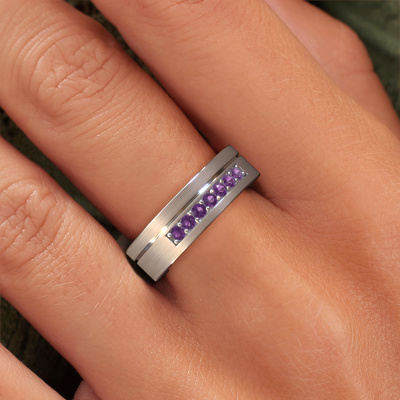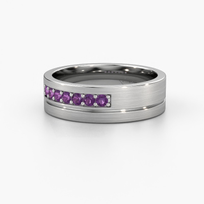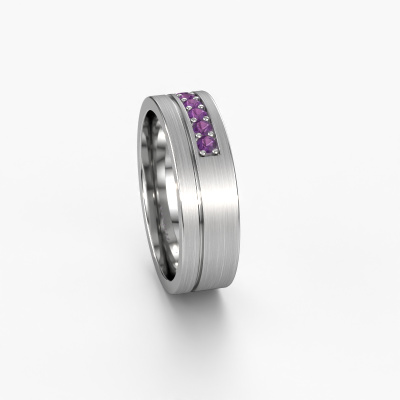 Une alliance mémoire et traditionnelles de ! Cette belle alliance pour dames est sertie d’un améthyste ronds. Grâce au fait que nos orfèvres fabriqueront les alliances forgée en platine à la main dans notre propre atelier, les améthystes sont placés avec la plus grande précision, de telle sorte que la lumière sur le améthyste rende un effet optimal. La largeur de cette alliance WH0312L16AM traditionnelles est de ±6 mm et sa finition est mate. Une fois que vous aurez composé votre bague, notre créateur de bijoux se mettra au travail. Il fera un dessin en 3D de votre alliance. Nous pouvons également utiliser ce dessin pour créer une bague factice. Vous aurez la possibilité de commander cette bague factice pour que vous puissiez voir à l'avance comment votre bague sera. Par la suite, notre orfèvre qualifié fabriquera votre bague dans notre atelier. Nous utilisons de l'or issue du commerce équitable, de telle sorte que vous puissiez obtenir une bague dont nous sommes fiers de sa composition et de son apparence. Vous pouvez également nous remettre votre propre or. Parce que nous fabriquons votre bague à la main, nous pouvons en effet utiliser votre propre or. Notre objectif est de créer une belle alliance brillante comme vous le souhaitiez !Au fait, vous pouvez être inspiré par cette bague et l'ajuster ultérieurement à votre goût. Préférez-vous un anneau plus mince ou plus large ? Préférez-vous une bague plus brillante ou mate ? Tout est possible. Aussi, si vous avez une idée de vos propres alliances extraordinaires, ou si vous avez vu un bel ensemble ailleurs qui vous plait beaucoup et que vous souhaitez personnaliser à votre goût : pas de problème ! N'hésitez pas à nous contacter. Nos designers se feront un plaisir de discuter de vos possibilités avec vous !Parce que nous ne fabriquons toutes les alliances qu'une fois les commandes passées, nous n’avons pas de frais de stocks coûteux. Tous nos bijoux sont également fabriqués selon l'artisanat traditionnel dans notre propre atelier. Cela nous permet de vous la une garantie du meilleur prix, notre prix étant 30% inférieur à celui d'autres bijoutiers. Et que vos alliances soient livrées dans la qualité des bijoutiers de confiance !Pour vous faciliter la tâche, vous pouvez facilement nous retourner tout bijou commandé dans les 30 jours suivant la livraison.