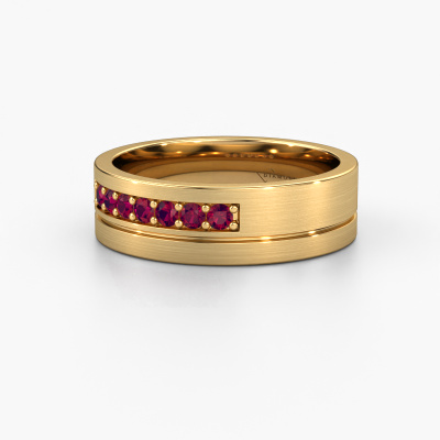Une alliance mémoire et traditionnelles de 14 Carat ! Cette belle alliance pour dames est sertie d’un rhodolite ronds. Grâce au fait que nos orfèvres fabriqueront les alliances forgée en or jaune à la main dans notre propre atelier, les rhodolites sont placés avec la plus grande précision, de telle sorte que la lumière sur le rhodolite rende un effet optimal. La largeur de cette alliance WH0312L16AM traditionnelles est de ±6 mm et sa finition est mate. Une fois que vous aurez composé votre bague, notre créateur de bijoux se mettra au travail. Il fera un dessin en 3D de votre alliance. Nous pouvons également utiliser ce dessin pour créer une bague factice. Vous aurez la possibilité de commander cette bague factice pour que vous puissiez voir à l'avance comment votre bague sera. Par la suite, notre orfèvre qualifié fabriquera votre bague dans notre atelier. Nous utilisons de l'or issue du commerce équitable, de telle sorte que vous puissiez obtenir une bague dont nous sommes fiers de sa composition et de son apparence. Vous pouvez également nous remettre votre propre or. Parce que nous fabriquons votre bague à la main, nous pouvons en effet utiliser votre propre or. Notre objectif est de créer une belle alliance brillante comme vous le souhaitiez !Au fait, vous pouvez être inspiré par cette bague et l'ajuster ultérieurement à votre goût. Préférez-vous un anneau plus mince ou plus large ? Préférez-vous une bague plus brillante ou mate ? Tout est possible. Aussi, si vous avez une idée de vos propres alliances extraordinaires, ou si vous avez vu un bel ensemble ailleurs qui vous plait beaucoup et que vous souhaitez personnaliser à votre goût : pas de problème ! N'hésitez pas à nous contacter. Nos designers se feront un plaisir de discuter de vos possibilités avec vous !Parce que nous ne fabriquons toutes les alliances qu'une fois les commandes passées, nous n’avons pas de frais de stocks coûteux. Tous nos bijoux sont également fabriqués selon l'artisanat traditionnel dans notre propre atelier. Cela nous permet de vous la une garantie du meilleur prix, notre prix étant 30% inférieur à celui d'autres bijoutiers. Et que vos alliances soient livrées dans la qualité des bijoutiers de confiance !Pour vous faciliter la tâche, vous pouvez facilement nous retourner tout bijou commandé dans les 30 jours suivant la livraison.
