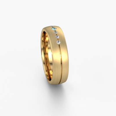 Cette alliance pour dames modernes est une superbe alliance modernes, qui symbolise votre amour unique l'uns pour l'autre ! Parfaitement adaptée à l'homme au style contemporain. Et elles peuvent être composées ensemble selon vos propres souhaits et vos propres idées. Notre orfèvre voit un beau défi dans chaque alliance et aime commencer à travailler sur Votre propre création dans notre studio. Avec beaucoup de soin et de passion, il fabrique votre union WH0162L25A à la main, en utilisant à la fois les techniques les plus innovantes et l'artisanat authentique. Et avec comme résultat cette bague unique et modernes pour femmes ! Dans cette alliance modernes WH0162L25A, le topaze bleue ronds est serti, il à une largeur de ±5,5 mm et une finition mates. Une fois que vous aurez composé votre bague, notre créateur de bijoux se mettra au travail. Il fera un dessin en 3D de votre alliance. Nous pouvons également utiliser ce dessin pour créer une bague factice. Vous aurez la possibilité de commander cette bague factice pour que vous puissiez voir à l'avance comment votre bague sera. Par la suite, notre orfèvre qualifié fabriquera votre bague dans notre atelier. Nous utilisons de l'or issue du commerce équitable, de telle sorte que vous puissiez obtenir une bague dont nous sommes fiers de sa composition et de son apparence. Vous pouvez également nous remettre votre propre or. Parce que nous fabriquons votre bague à la main, nous pouvons en effet utiliser votre propre or. Notre objectif est de créer une belle alliance brillante comme vous le souhaitiez !Avez-vous des souhaits particuliers concernant votre alliance, mais vous avez des difficultés à trouver le design sur notre site Web ? Donc assurez-vous de contacter nos designers ! Par exemple, nous pouvons rendre l'anneau plus étroit ou plus large. Préférez-vous une finition mate ? Nous pouvons faire cela ! Les gravures sont un excellent moyen de personnaliser vos bagues et s’appliquent à la plupart des designs. Ou bien, si vous avez une idée de vos propres alliances extraordinaires, contactez-nous ! Nos designers sont prêts à relever le défi de concevoir la bague de vos rêves !Parce que nous ne fabriquons toutes les alliances qu'une fois les commandes passées, nous n’avons pas de frais de stocks coûteux. Tous nos bijoux sont également fabriqués selon l'artisanat traditionnel dans notre propre atelier. Cela nous permet de vous la une garantie du meilleur prix, notre prix étant 30% inférieur à celui d'autres bijoutiers. Et que vos alliances soient livrées dans la qualité des bijoutiers de confiance !Pour vous faciliter la tâche, vous pouvez facilement nous retourner tout bijou commandé dans les 30 jours suivant la livraison.