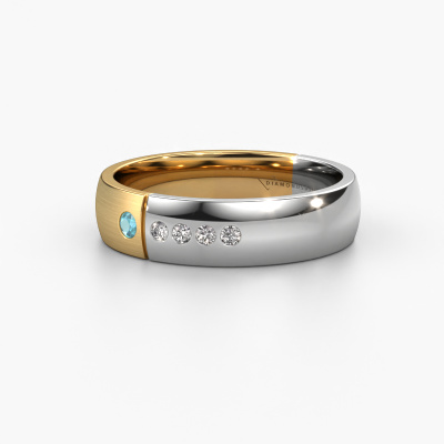 Quelle belle combinaison de deux métaux précieux, qui se renforcent si joliment dans le design modernes de cette bague ! Notre orfèvre pense qu'il est spécial de créer pour vous une alliance unique que vous avez composée vous-même. Chaque bague que nous fournissons est fabriquée à la main dans notre propre atelier. Cela permet de réaliser tous vos souhaits pour votre bague personnelle qui convient à votre style. Dans cette alliance modernes WH1101L25SAMP, un topaze bleue ronds est serti et il à une largeur de ±5 mm et une finition mate/poli. Vous pouvez assembler cette alliance pour dames dans de différentes combinaisons de métaux précieux, celle-ci étant dotée de la combinaison d'or 14 Carat et d'or blanc.
