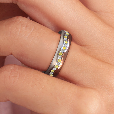 Une alliance large et éternité ! Unique, tout comme l'est votre relation ! Tout le monde est différent et par conséquent, vous ne voulez pas d'Une alliance standard. Cette alliance pour dames modernes WH0803L35BM a été conçue par nos créateurs de bijoux et est fabriquée à la main par notre orfèvre. Ce métier ancien pur est combiné aux techniques les plus modernes pour créer le meilleur résultat. Parce que notre orfèvre recherche la perfection dans toutes les facettes. Une alliance unique et faite à la main, faite pour sceller votre amour lors du grand jour ! Le saphir jaune est serti dans cette alliance en or modernes WH0803L35BM, il à une largeur de ±5 mm et une finition brillante. Vous pouvez indiquer dans le configurateur ci-dessus quelle combinaison de métaux précieux vous convient, tout est possible ! La possibilité de regarder les propriétés des métaux précieux est un avantage particulier. Par exemple, l'or et l'argent sont deux métaux précieux plus mous. Plus l'or est pur, plus le nombre de carats est élevé et donc plus l'alliance est douce. Mais bien sûr, l'or est suffisamment dur pour être transformé en une alliance classique ! Si vous souhaitez un métal précieux qui durera toute une vie, nous vous recommandons vivement le platine. Il s’agit du métal précieux le plus résistant et le plus durable avec lequel notre orfèvre travaille.Ce alliance peut également servir de source d’inspiration. Souhaitez-vous une bague mate ou brillante (sans frais supplémentaires), ou préférez-vous qu’elle soit plus large ou plus étroite ? Tout est possible. Comme il existe d’innombrables variations, nous ne pouvons pas tout afficher sur notre site web. Avez-vous une idée pour de magnifiques alliances ou avez-vous vu ailleurs un superbe ensemble de bagues de mariage ? Contactez-nous, nos designers sont prêts à vous aider.Parce que nous ne fabriquons toutes les alliances qu'une fois les commandes passées, nous n’avons pas de frais de stocks coûteux. Tous nos bijoux sont également fabriqués selon l'artisanat traditionnel dans notre propre atelier. Cela nous permet de vous la une garantie du meilleur prix, notre prix étant 30% inférieur à celui d'autres bijoutiers. Et que vos alliances soient livrées dans la qualité des bijoutiers de confiance !Pour vous faciliter la tâche, vous pouvez facilement nous retourner tout bijou commandé dans les 30 jours suivant la livraison.