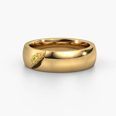 Une alliance élégants et modernes de 14 Carat ! Cette belle alliance pour dames est sertie d’un saphir jaune ronds. Grâce au fait que nos orfèvres fabriqueront les alliances forgée en or jaune à la main dans notre propre atelier, les saphirs jaunes sont placés avec la plus grande précision, de telle sorte que la lumière sur le saphir jaune rende un effet optimal. La largeur de cette alliance WH2007L modernes est de ±6 mm et sa finition est mate/poli. Dans notre équipe spécialisée, le créateur de bijoux crée votre alliance dans un dessin 3D. Si vous le souhaitez, vous pouvez également commander une alliance factice pour pouvoir la voir et l'ajuster à l’avance. Notre orfèvre travaillera ensuite à la main dans notre atelier pour fabriquer avec précision votre bague unique. Il effectuera un travail très soigné, car la fabrication et la finition nécessitent un oeil vif. Et voici la beauté de notre métier, car à la fin de notre travail votre alliance sera le fruit d’un véritable chef d'oeuvre accompli avec passion !Ce alliance peut également servir de source d’inspiration. Souhaitez-vous une bague mate ou brillante (sans frais supplémentaires), ou préférez-vous qu’elle soit plus large ou plus étroite ? Tout est possible. Comme il existe d’innombrables variations, nous ne pouvons pas tout afficher sur notre site web. Avez-vous une idée pour de magnifiques alliances ou avez-vous vu ailleurs un superbe ensemble de bagues de mariage ? Contactez-nous, nos designers sont prêts à vous aider.Les alliances ne sont fabriquées que sur commande. L'avantage principal est que nous ne faisons pas de stocks coûteux, ce qui se reflète donc dans le prix de nos bijoux. Toutes les alliances sont fabriquées dans notre propre atelier par nos propres orfèvres. Nous pouvons donc vous donner la garantie du meilleur prix, pour une bague d'une qualité des bijoutiers de confiance.Pour vous faciliter la tâche, vous pouvez facilement nous retourner tout bijou commandé dans les 30 jours suivant la livraison.