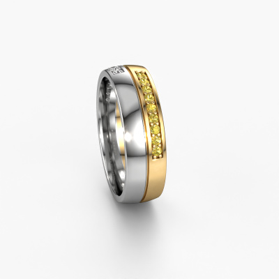 Cette alliance pour dames modernes est une superbe alliance modernes, qui symbolise votre amour unique l'uns pour l'autre ! Parfaitement adaptée à l'homme au style contemporain. Et elles peuvent être composées ensemble selon vos propres souhaits et vos propres idées. Notre orfèvre voit un beau défi dans chaque alliance et aime commencer à travailler sur Votre propre création dans notre studio. Avec beaucoup de soin et de passion, il fabrique votre union WH0213L26AP à la main, en utilisant à la fois les techniques les plus innovantes et l'artisanat authentique. Et avec comme résultat cette bague unique et modernes pour femmes ! Dans cette alliance modernes WH0213L26AP, le saphir jaune ronds est serti, il à une largeur de ±6 mm et une finition brillante. Notre challenge est de créer une alliance classique faite à la main et conçue par vous. Chaque conception peut être personnalisée en choisissant différents métaux précieux et pierres précieuses de notre vaste collection. Platine, or ou argent. Tout est possible. Le platine, par exemple, est un métal hypoallergénique et il convient donc aux personnes ayant la peau sensible. Le platine résiste plus également au ternissement et aux marques d'usure. L'or est disponible en différents alliages (9, 14 et 18 ct) et en 3 couleurs. Ces options vous permettent de créer une alliance unique. N'hésitez pas à nous contacter si vous avez des souhaits spécifiques et souhaitez personnaliser votre alliance.Au fait, vous pouvez être inspiré par cette bague et l'ajuster ultérieurement à votre goût. Préférez-vous un anneau plus mince ou plus large ? Préférez-vous une bague plus brillante ou mate ? Tout est possible. Aussi, si vous avez une idée de vos propres alliances extraordinaires, ou si vous avez vu un bel ensemble ailleurs qui vous plait beaucoup et que vous souhaitez personnaliser à votre goût : pas de problème ! N'hésitez pas à nous contacter. Nos designers se feront un plaisir de discuter de vos possibilités avec vous !Parce que nous ne fabriquons toutes les alliances qu'une fois les commandes passées, nous n’avons pas de frais de stocks coûteux. Tous nos bijoux sont également fabriqués selon l'artisanat traditionnel dans notre propre atelier. Cela nous permet de vous la une garantie du meilleur prix, notre prix étant 30% inférieur à celui d'autres bijoutiers. Et que vos alliances soient livrées dans la qualité des bijoutiers de confiance !Pour vous faciliter la tâche, vous pouvez facilement nous retourner tout bijou commandé dans les 30 jours suivant la livraison.