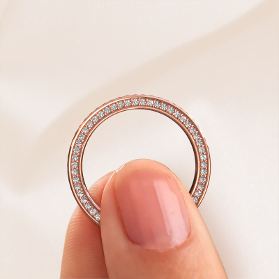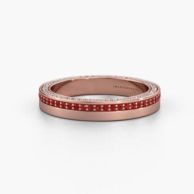 L’alliance éternité en or rose exclusives est une bague avec une belle signification symbolique. Parce qu'il n'y a pas de début ni de fin dans sa rangée de rubis, vous montrez qu'il n'y a pas non plus de début ni de fin à votre amour. Un alliance à porter tous les jours, comme un véritable sceau de votre relation. La largeur de cette alliance carré WH2214L15BM est de ±3,5 mm et elle est sertie d’un rubis de 1 mm. Une fois que vous aurez composé votre bague, notre créateur de bijoux se mettra au travail. Il fera un dessin en 3D de votre alliance. Nous pouvons également utiliser ce dessin pour créer une bague factice. Vous aurez la possibilité de commander cette bague factice pour que vous puissiez voir à l'avance comment votre bague sera. Par la suite, notre orfèvre qualifié fabriquera votre bague dans notre atelier. Nous utilisons de l'or issue du commerce équitable, de telle sorte que vous puissiez obtenir une bague dont nous sommes fiers de sa composition et de son apparence. Vous pouvez également nous remettre votre propre or. Parce que nous fabriquons votre bague à la main, nous pouvons en effet utiliser votre propre or. Notre objectif est de créer une belle alliance brillante comme vous le souhaitiez !Avez-vous des souhaits particuliers concernant votre alliance, mais vous avez des difficultés à trouver le design sur notre site Web ? Donc assurez-vous de contacter nos designers ! Par exemple, nous pouvons rendre l'anneau plus étroit ou plus large. Préférez-vous une finition mate ? Nous pouvons faire cela ! Les gravures sont un excellent moyen de personnaliser vos bagues et s’appliquent à la plupart des designs. Ou bien, si vous avez une idée de vos propres alliances extraordinaires, contactez-nous ! Nos designers sont prêts à relever le défi de concevoir la bague de vos rêves !En combinant nos techniques modernes avec l'artisanat ancien, nous pouvons concevoir et personnaliser les bijoux de la plus haute qualité avec le plus grand soin pour vous au meilleur prix. Nos [typetr_pluriel] sont toujours 30 % moins chers que ceux des autres bijoutiers. Nous fabriquons des alliances sur commande, ce qui nous évite d'avoir un stock important.Pour vous faciliter la tâche, vous pouvez facilement nous retourner tout bijou commandé dans les 30 jours suivant la livraison.