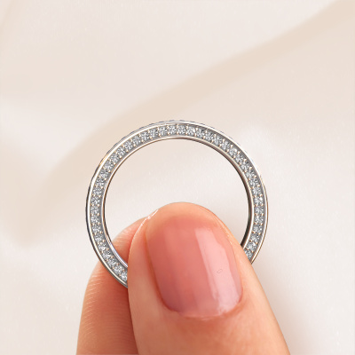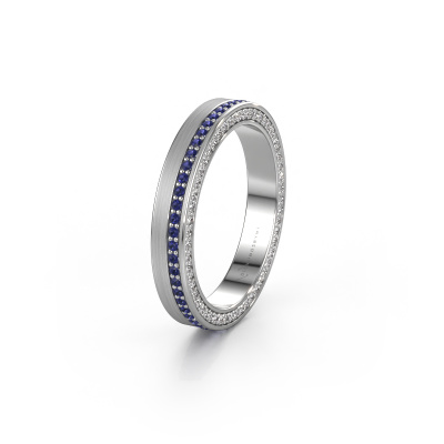 L’alliance éternité en platine exclusives est une bague avec une belle signification symbolique. Parce qu'il n'y a pas de début ni de fin dans sa rangée de saphir, vous montrez qu'il n'y a pas non plus de début ni de fin à votre amour. Un alliance à porter tous les jours, comme un véritable sceau de votre relation. La largeur de cette alliance carré WH2214L15BM est de ±3,5 mm et elle est sertie d’un saphir de 1 mm. Une fois que vous aurez composé votre bague, notre créateur de bijoux se mettra au travail. Il fera un dessin en 3D de votre alliance. Nous pouvons également utiliser ce dessin pour créer une bague factice. Vous aurez la possibilité de commander cette bague factice pour que vous puissiez voir à l'avance comment votre bague sera. Par la suite, notre orfèvre qualifié fabriquera votre bague dans notre atelier. Nous utilisons de l'or issue du commerce équitable, de telle sorte que vous puissiez obtenir une bague dont nous sommes fiers de sa composition et de son apparence. Vous pouvez également nous remettre votre propre or. Parce que nous fabriquons votre bague à la main, nous pouvons en effet utiliser votre propre or. Notre objectif est de créer une belle alliance brillante comme vous le souhaitiez !Avez-vous des souhaits particuliers concernant votre alliance, mais vous avez des difficultés à trouver le design sur notre site Web ? Donc assurez-vous de contacter nos designers ! Par exemple, nous pouvons rendre l'anneau plus étroit ou plus large. Préférez-vous une finition mate ? Nous pouvons faire cela ! Les gravures sont un excellent moyen de personnaliser vos bagues et s’appliquent à la plupart des designs. Ou bien, si vous avez une idée de vos propres alliances extraordinaires, contactez-nous ! Nos designers sont prêts à relever le défi de concevoir la bague de vos rêves !En combinant nos techniques modernes avec l'artisanat ancien, nous pouvons concevoir et personnaliser les bijoux de la plus haute qualité avec le plus grand soin pour vous au meilleur prix. Nos [typetr_pluriel] sont toujours 30 % moins chers que ceux des autres bijoutiers. Nous fabriquons des alliances sur commande, ce qui nous évite d'avoir un stock important.Pour vous faciliter la tâche, vous pouvez facilement nous retourner tout bijou commandé dans les 30 jours suivant la livraison.