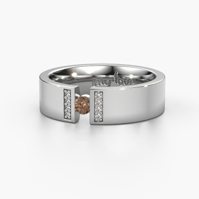 Une alliance unique serti d'un diamant brun ! La particularité de cette alliance en or pour dames est que vous pouvez graver un texte spécial, un texte qui a une signification particulière pour vous. Par exemple: un mot, une phrase courte, une partie d'un texte de chanson, ou quel texte serait très spécial pour vous ? immortalisez ce texte au moyen d'une belle gravure sur cette alliance modernes. La largeur de cette alliance propres textes pour dames mesure ±6 mm de large. Notre challenge est de créer une alliance classique faite à la main et conçue par vous. Chaque conception peut être personnalisée en choisissant différents métaux précieux et pierres précieuses de notre vaste collection. Platine, or ou argent. Tout est possible. Le platine, par exemple, est un métal hypoallergénique et il convient donc aux personnes ayant la peau sensible. Le platine résiste plus également au ternissement et aux marques d'usure. L'or est disponible en différents alliages (9, 14 et 18 ct) et en 3 couleurs. Ces options vous permettent de créer une alliance unique. N'hésitez pas à nous contacter si vous avez des souhaits spécifiques et souhaitez personnaliser votre alliance.Ce alliance peut également servir de source d’inspiration. Souhaitez-vous une bague mate ou brillante (sans frais supplémentaires), ou préférez-vous qu’elle soit plus large ou plus étroite ? Tout est possible. Comme il existe d’innombrables variations, nous ne pouvons pas tout afficher sur notre site web. Avez-vous une idée pour de magnifiques alliances ou avez-vous vu ailleurs un superbe ensemble de bagues de mariage ? Contactez-nous, nos designers sont prêts à vous aider.Parce que nous ne fabriquons toutes les alliances qu'une fois les commandes passées, nous n’avons pas de frais de stocks coûteux. Tous nos bijoux sont également fabriqués selon l'artisanat traditionnel dans notre propre atelier. Cela nous permet de vous la une garantie du meilleur prix, notre prix étant 30% inférieur à celui d'autres bijoutiers. Et que vos alliances soient livrées dans la qualité des bijoutiers de confiance !Pour vous faciliter la tâche, vous pouvez facilement nous retourner tout bijou commandé dans les 30 jours suivant la livraison.