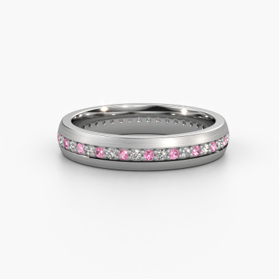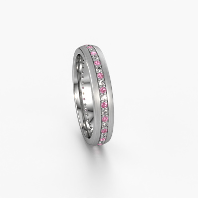 Saviez-vous que la bague éternité Ladies n'a pas que du charisme, mais est aussi symboliquement une magnifique alliance ? L’alliance éternité, avec les saphirs roses sertis les uns à côté des autres, représente votre amour éternel. Puisque les pierres sont serties tout autour de l’anneau, il n'y a pas de début ni de fin. Un symbole merveilleux, non ? La largeur de cette alliance pavé WH0103L24BM en or blanc est de ±4 mm et elle est sertie d’un saphir rose de 1.3 mm. Vous pouvez indiquer dans le configurateur ci-dessus quelle combinaison de métaux précieux vous convient, tout est possible ! La possibilité de regarder les propriétés des métaux précieux est un avantage particulier. Par exemple, l'or et l'argent sont deux métaux précieux plus mous. Plus l'or est pur, plus le nombre de carats est élevé et donc plus l'alliance est douce. Mais bien sûr, l'or est suffisamment dur pour être transformé en une alliance classique ! Si vous souhaitez un métal précieux qui durera toute une vie, nous vous recommandons vivement le platine. Il s’agit du métal précieux le plus résistant et le plus durable avec lequel notre orfèvre travaille.Ce alliance peut également servir de source d’inspiration. Souhaitez-vous une bague mate ou brillante (sans frais supplémentaires), ou préférez-vous qu’elle soit plus large ou plus étroite ? Tout est possible. Comme il existe d’innombrables variations, nous ne pouvons pas tout afficher sur notre site web. Avez-vous une idée pour de magnifiques alliances ou avez-vous vu ailleurs un superbe ensemble de bagues de mariage ? Contactez-nous, nos designers sont prêts à vous aider.Les alliances ne sont fabriquées que sur commande. L'avantage principal est que nous ne faisons pas de stocks coûteux, ce qui se reflète donc dans le prix de nos bijoux. Toutes les alliances sont fabriquées dans notre propre atelier par nos propres orfèvres. Nous pouvons donc vous donner la garantie du meilleur prix, pour une bague d'une qualité des bijoutiers de confiance.Pour vous faciliter la tâche, vous pouvez facilement nous retourner tout bijou commandé dans les 30 jours suivant la livraison.