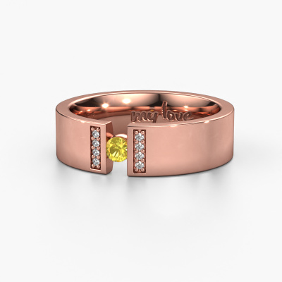 Une alliance unique serti d'un saphir jaune ! La particularité de cette alliance en or pour dames est que vous pouvez graver un texte spécial, un texte qui a une signification particulière pour vous. Par exemple: un mot, une phrase courte, une partie d'un texte de chanson, ou quel texte serait très spécial pour vous ? immortalisez ce texte au moyen d'une belle gravure sur cette alliance modernes. La largeur de cette alliance propres textes pour dames mesure ±6 mm de large. Notre challenge est de créer une alliance classique faite à la main et conçue par vous. Chaque conception peut être personnalisée en choisissant différents métaux précieux et pierres précieuses de notre vaste collection. Platine, or ou argent. Tout est possible. Le platine, par exemple, est un métal hypoallergénique et il convient donc aux personnes ayant la peau sensible. Le platine résiste plus également au ternissement et aux marques d'usure. L'or est disponible en différents alliages (9, 14 et 18 ct) et en 3 couleurs. Ces options vous permettent de créer une alliance unique. N'hésitez pas à nous contacter si vous avez des souhaits spécifiques et souhaitez personnaliser votre alliance.Ce alliance peut également servir de source d’inspiration. Souhaitez-vous une bague mate ou brillante (sans frais supplémentaires), ou préférez-vous qu’elle soit plus large ou plus étroite ? Tout est possible. Comme il existe d’innombrables variations, nous ne pouvons pas tout afficher sur notre site web. Avez-vous une idée pour de magnifiques alliances ou avez-vous vu ailleurs un superbe ensemble de bagues de mariage ? Contactez-nous, nos designers sont prêts à vous aider.Parce que nous ne fabriquons toutes les alliances qu'une fois les commandes passées, nous n’avons pas de frais de stocks coûteux. Tous nos bijoux sont également fabriqués selon l'artisanat traditionnel dans notre propre atelier. Cela nous permet de vous la une garantie du meilleur prix, notre prix étant 30% inférieur à celui d'autres bijoutiers. Et que vos alliances soient livrées dans la qualité des bijoutiers de confiance !Pour vous faciliter la tâche, vous pouvez facilement nous retourner tout bijou commandé dans les 30 jours suivant la livraison.