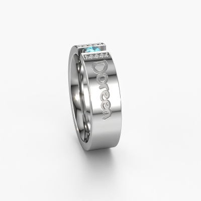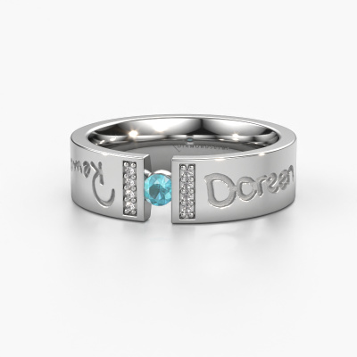 Une alliance unique serti d'un topaze bleue ! La particularité de cette alliance en or pour dames est que vous pouvez graver un texte spécial, un texte qui a une signification particulière pour vous. Par exemple: un mot, une phrase courte, une partie d'un texte de chanson, ou quel texte serait très spécial pour vous ? immortalisez ce texte au moyen d'une belle gravure sur cette alliance modernes. La largeur de cette alliance propres textes pour dames mesure ±6 mm de large. Vous pouvez indiquer dans le configurateur ci-dessus quelle combinaison de métaux précieux vous convient, tout est possible ! La possibilité de regarder les propriétés des métaux précieux est un avantage particulier. Par exemple, l'or et l'argent sont deux métaux précieux plus mous. Plus l'or est pur, plus le nombre de carats est élevé et donc plus l'alliance est douce. Mais bien sûr, l'or est suffisamment dur pour être transformé en une alliance classique ! Si vous souhaitez un métal précieux qui durera toute une vie, nous vous recommandons vivement le platine. Il s’agit du métal précieux le plus résistant et le plus durable avec lequel notre orfèvre travaille.Ce alliance peut également servir de source d’inspiration. Souhaitez-vous une bague mate ou brillante (sans frais supplémentaires), ou préférez-vous qu’elle soit plus large ou plus étroite ? Tout est possible. Comme il existe d’innombrables variations, nous ne pouvons pas tout afficher sur notre site web. Avez-vous une idée pour de magnifiques alliances ou avez-vous vu ailleurs un superbe ensemble de bagues de mariage ? Contactez-nous, nos designers sont prêts à vous aider.En combinant nos techniques modernes avec l'artisanat ancien, nous pouvons concevoir et personnaliser les bijoux de la plus haute qualité avec le plus grand soin pour vous au meilleur prix. Nos [typetr_pluriel] sont toujours 30 % moins chers que ceux des autres bijoutiers. Nous fabriquons des alliances sur commande, ce qui nous évite d'avoir un stock important.Pour vous faciliter la tâche, vous pouvez facilement nous retourner tout bijou commandé dans les 30 jours suivant la livraison.