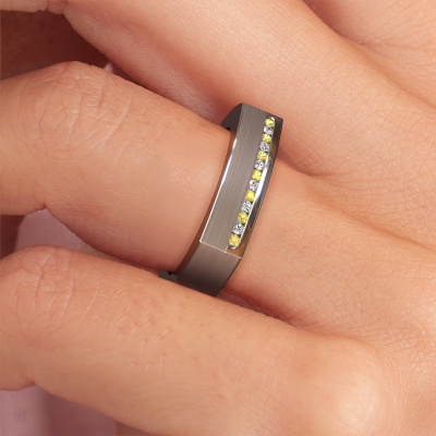 Une alliance large et carré ! Unique, tout comme l'est votre relation ! Tout le monde est différent et par conséquent, vous ne voulez pas d'Une alliance standard. Cette alliance pour dames uniques WH2005L a été conçue par nos créateurs de bijoux et est fabriquée à la main par notre orfèvre. Ce métier ancien pur est combiné aux techniques les plus modernes pour créer le meilleur résultat. Parce que notre orfèvre recherche la perfection dans toutes les facettes. Une alliance unique et faite à la main, faite pour sceller votre amour lors du grand jour ! Le saphir jaune est serti dans cette alliance en or uniques WH2005L, il à une largeur de ±5 mm et une finition mate/poli. Choisir une alliance n'est pas quelque chose que vous voulez faire rapidement. En fin de compte, vous voulez porter une bague qui correspond exactement à votre style et à vos souhaits. Et cela reflète aussi votre amour et votre relation l'un avec l'autre. Une bague qui doit être portée toute votre vie et qui symbolise tout ce qui vous relie. C'est pourquoi nous aimons tellement le fait de pouvoir fabriquer exactement la bague que vous avez en tête. Tous les bijoux sont fabriqués à la main dans notre propre atelier, afin que nous puissions traiter chaque détail de manière très précise. Il n'y a pas de meilleur métier !Avez-vous des souhaits spécifiques ? Telle qu'une bague brillante ou mate ? Un anneau plus large ou un anneau plus petit ? Les possibilités de cette alliance sont infinies. Assurez-vous de contacter nos designers pour adapter votre bague à vos goûts personnels. Avez-vous vu un anneau quelque part, ou avez-vous des idées personnelles spéciales ? Alors n'hésitez pas à contacter nos designers et à discuter de vos idées pour votre propre ensemble de magnifiques alliances. Nous sommes prêts à relever le défi de créer la bague exactement comme vous la souhaitez !Les alliances ne sont fabriquées que sur commande. L'avantage principal est que nous ne faisons pas de stocks coûteux, ce qui se reflète donc dans le prix de nos bijoux. Toutes les alliances sont fabriquées dans notre propre atelier par nos propres orfèvres. Nous pouvons donc vous donner la garantie du meilleur prix, pour une bague d'une qualité des bijoutiers de confiance.Pour vous faciliter la tâche, vous pouvez facilement nous retourner tout bijou commandé dans les 30 jours suivant la livraison.