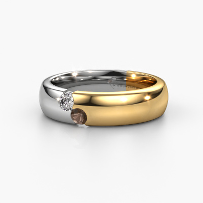 Une alliance unique forgée en or jaune bicolore pour dames, conçue par vous-même et fabriquée à la main par notre orfèvre dans notre propre atelier ! Un beau symbole qui reflète votre amour et que vous pouvez porter sur vous toute votre vie ! Chaque bague que nous fournissons est fabriquée à la main dans notre propre atelier. Cela nous permet de réaliser tous vos souhaits concernant votre bague personnelle qui convient à votre style. Dans cette alliance modernes WH1003L26C, un quartz fumé ronds est serti, il à une largeur de ±6 mm et une finition brillante. Dans notre équipe spécialisée, le créateur de bijoux crée votre alliance dans un dessin 3D. Si vous le souhaitez, vous pouvez également commander une alliance factice pour pouvoir la voir et l'ajuster à l’avance. Notre orfèvre travaillera ensuite à la main dans notre atelier pour fabriquer avec précision votre bague unique. Il effectuera un travail très soigné, car la fabrication et la finition nécessitent un oeil vif. Et voici la beauté de notre métier, car à la fin de notre travail votre alliance sera le fruit d’un véritable chef d'oeuvre accompli avec passion !Laissez-vous faire inspirer par nos designs et personnalisez-les selon vos goûts : plus large ou plus petit, brillant ou mat ? Pas de problème ! Même si vous avez des idées pour vos propres alliances spéciales, nos designers de bijoux sont prêts à vous aider à concevoir la bague de vos rêves. N'hésitez pas à nous contacter !Les alliances ne sont fabriquées que sur commande. L'avantage principal est que nous ne faisons pas de stocks coûteux, ce qui se reflète donc dans le prix de nos bijoux. Toutes les alliances sont fabriquées dans notre propre atelier par nos propres orfèvres. Nous pouvons donc vous donner la garantie du meilleur prix, pour une bague d'une qualité des bijoutiers de confiance.Pour vous faciliter la tâche, vous pouvez facilement nous retourner tout bijou commandé dans les 30 jours suivant la livraison.