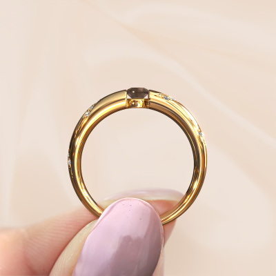 Dans cette alliance exclusives pour dames, le savoir-faire, l'amour et la passion se mêlent aux techniques d’orfèvre les plus modernes. Il faut un œil expérimenté, de la patience et une main habile pour concevoir cette alliance forgée en or jaune dans les moindres détails. Ce travail est exactement ce que nos orfèvres recherchent ! De cette façon, vous aurez une bague unique, adaptée à vos souhaits dans tous ses détails. Et la bague est faite à la main dans notre propre atelier. Dans cette alliance exclusives WH2102L34A, un quartz fumé de 4 mm est serti. Le quartz fumé à une largeur de ±5 mm et une finition brillante.