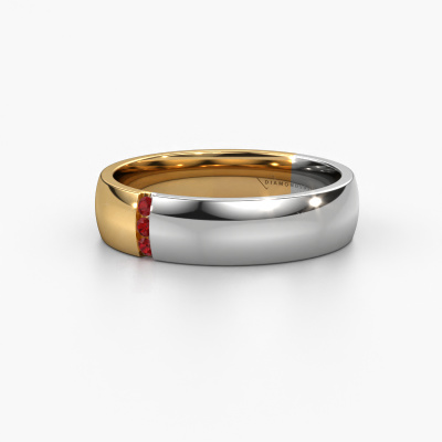 Une alliance unique forgée en or jaune bicolore pour dames, conçue par vous-même et fabriquée à la main par notre orfèvre dans notre propre atelier ! Un beau symbole qui reflète votre amour et que vous pouvez porter sur vous toute votre vie ! Chaque bague que nous fournissons est fabriquée à la main dans notre propre atelier. Cela nous permet de réaliser tous vos souhaits concernant votre bague personnelle qui convient à votre style. Dans cette alliance modernes WH1103L25AP, un rubis ronds est serti, il à une largeur de ±5 mm et une finition brillante.