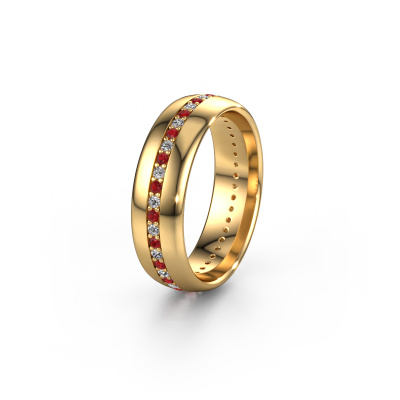 Si vous recherchez vraiment Une alliance unique en or jaune et exclusives avec un look magnifique, cette alliance est un choix absolument magnifique. Et c'est précisément parce que vous pouvez l'ajuster à votre style que vous pouvez transformer cette alliance pour femmes en une bague éternité et unique. Dans cette alliance exclusives pour dames, le savoir-faire, l'amour et la passion se mêlent aux techniques d’orfèvres les plus modernes. Dans cette alliance exclusives WH0203L36AP, un rubis de 1.3 mm est serti, il à une largeur de ±6 mm et une finition brillante. Une fois que vous aurez composé votre bague, notre créateur de bijoux se mettra au travail. Il fera un dessin en 3D de votre alliance. Nous pouvons également utiliser ce dessin pour créer une bague factice. Vous aurez la possibilité de commander cette bague factice pour que vous puissiez voir à l'avance comment votre bague sera. Par la suite, notre orfèvre qualifié fabriquera votre bague dans notre atelier. Nous utilisons de l'or issue du commerce équitable, de telle sorte que vous puissiez obtenir une bague dont nous sommes fiers de sa composition et de son apparence. Vous pouvez également nous remettre votre propre or. Parce que nous fabriquons votre bague à la main, nous pouvons en effet utiliser votre propre or. Notre objectif est de créer une belle alliance brillante comme vous le souhaitiez !Avez-vous des préférences particulières concernant votre alliance ? Par exemple, un anneau plus petit ou plus large ? Ou peut-être un anneau brillant ou mat ? Il y a beaucoup de variations possibles. Vous pouvez toujours discuter des possibilités avec nos créateurs de bijoux. Si vous avez une certaine alliance en tête, nos designers se feront un plaisir de vous aider en dessinant les bagues de vos rêves. Assurez-vous de nous contacter !Puisque nous concevons et livrons nos propres alliances, nous sommes en mesure de vous proposer une alliance à un prix que vous ne pourrez pas trouver ailleurs. Une alliance est fabriquée sur commande, ce qui permet d'éviter les excédents de matériel et nous permet de vous proposer une superbe offre de prix. Nous comprenons qu'acheter votre alliance en ligne soit un risque, mais nous vous assistons volontiers dans le processus de conception, en tenant compte de votre budget.Pour vous faciliter la tâche, vous pouvez facilement nous retourner tout bijou commandé dans les 30 jours suivant la livraison.