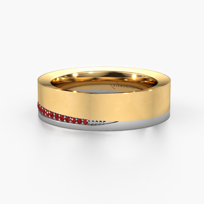 Dans cette alliance design pour dames, le savoir-faire, l'amour et la passion se mêlent aux techniques d’orfèvre les plus modernes. Il faut un œil expérimenté, de la patience et une main habile pour concevoir cette alliance forgée en or jaune dans les moindres détails. Ce travail est exactement ce que nos orfèvres recherchent ! De cette façon, vous aurez une bague unique, adaptée à vos souhaits dans tous ses détails. Et la bague est faite à la main dans notre propre atelier. Dans cette alliance design WH1002L15DP, un rubis de 0.8 mm est serti. Le rubis à une largeur de ±6 mm et une finition brillante. Vous pouvez indiquer dans le configurateur ci-dessus quelle combinaison de métaux précieux vous convient, tout est possible ! La possibilité de regarder les propriétés des métaux précieux est un avantage particulier. Par exemple, l'or et l'argent sont deux métaux précieux plus mous. Plus l'or est pur, plus le nombre de carats est élevé et donc plus l'alliance est douce. Mais bien sûr, l'or est suffisamment dur pour être transformé en une alliance classique ! Si vous souhaitez un métal précieux qui durera toute une vie, nous vous recommandons vivement le platine. Il s’agit du métal précieux le plus résistant et le plus durable avec lequel notre orfèvre travaille.Avez-vous des préférences particulières concernant votre alliance ? Par exemple, un anneau plus petit ou plus large ? Ou peut-être un anneau brillant ou mat ? Il y a beaucoup de variations possibles. Vous pouvez toujours discuter des possibilités avec nos créateurs de bijoux. Si vous avez une certaine alliance en tête, nos designers se feront un plaisir de vous aider en dessinant les bagues de vos rêves. Assurez-vous de nous contacter !Les alliances ne sont fabriquées que sur commande. L'avantage principal est que nous ne faisons pas de stocks coûteux, ce qui se reflète donc dans le prix de nos bijoux. Toutes les alliances sont fabriquées dans notre propre atelier par nos propres orfèvres. Nous pouvons donc vous donner la garantie du meilleur prix, pour une bague d'une qualité des bijoutiers de confiance.Pour vous faciliter la tâche, vous pouvez facilement nous retourner tout bijou commandé dans les 30 jours suivant la livraison.