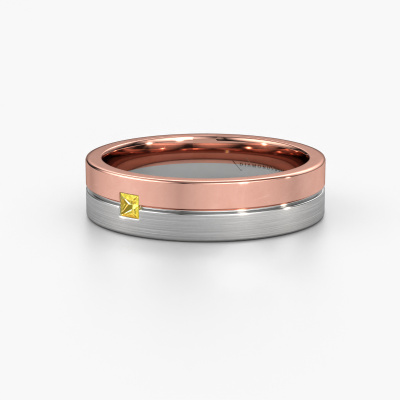 Une alliance unique forgée en or rose bicolore pour dames, conçue par vous-même et fabriquée à la main par notre orfèvre dans notre propre atelier ! Un beau symbole qui reflète votre amour et que vous pouvez porter sur vous toute votre vie ! Chaque bague que nous fournissons est fabriquée à la main dans notre propre atelier. Cela nous permet de réaliser tous vos souhaits concernant votre bague personnelle qui convient à votre style. Dans cette alliance modernes WH0201L15ASQPM, un saphir jaune princesse est serti, il à une largeur de ±5 mm et une finition mate/poli. Vous pouvez indiquer dans le configurateur ci-dessus quelle combinaison de métaux précieux vous convient, tout est possible ! La possibilité de regarder les propriétés des métaux précieux est un avantage particulier. Par exemple, l'or et l'argent sont deux métaux précieux plus mous. Plus l'or est pur, plus le nombre de carats est élevé et donc plus l'alliance est douce. Mais bien sûr, l'or est suffisamment dur pour être transformé en une alliance classique ! Si vous souhaitez un métal précieux qui durera toute une vie, nous vous recommandons vivement le platine. Il s’agit du métal précieux le plus résistant et le plus durable avec lequel notre orfèvre travaille.Laissez-vous faire inspirer par nos designs et personnalisez-les selon vos goûts : plus large ou plus petit, brillant ou mat ? Pas de problème ! Même si vous avez des idées pour vos propres alliances spéciales, nos designers de bijoux sont prêts à vous aider à concevoir la bague de vos rêves. N'hésitez pas à nous contacter !Les alliances ne sont fabriquées que sur commande. L'avantage principal est que nous ne faisons pas de stocks coûteux, ce qui se reflète donc dans le prix de nos bijoux. Toutes les alliances sont fabriquées dans notre propre atelier par nos propres orfèvres. Nous pouvons donc vous donner la garantie du meilleur prix, pour une bague d'une qualité des bijoutiers de confiance.Pour vous faciliter la tâche, vous pouvez facilement nous retourner tout bijou commandé dans les 30 jours suivant la livraison.