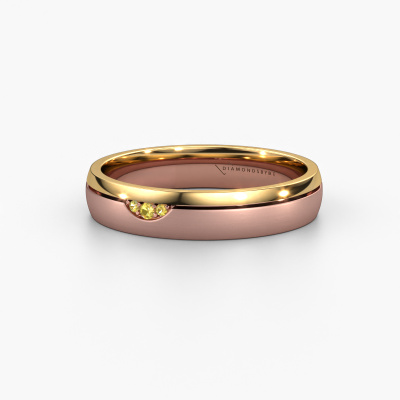 Une alliance unique forgée en or rose bicolore pour dames, conçue par vous-même et fabriquée à la main par notre orfèvre dans notre propre atelier ! Un beau symbole qui reflète votre amour et que vous pouvez porter sur vous toute votre vie ! Chaque bague que nous fournissons est fabriquée à la main dans notre propre atelier. Cela nous permet de réaliser tous vos souhaits concernant votre bague personnelle qui convient à votre style. Dans cette alliance contemporains WH0334L24X, un saphir jaune ronds est serti, il à une largeur de ±4 mm et une finition mate/poli. Choisir une alliance n'est pas quelque chose que vous voulez faire rapidement. En fin de compte, vous voulez porter une bague qui correspond exactement à votre style et à vos souhaits. Et cela reflète aussi votre amour et votre relation l'un avec l'autre. Une bague qui doit être portée toute votre vie et qui symbolise tout ce qui vous relie. C'est pourquoi nous aimons tellement le fait de pouvoir fabriquer exactement la bague que vous avez en tête. Tous les bijoux sont fabriqués à la main dans notre propre atelier, afin que nous puissions traiter chaque détail de manière très précise. Il n'y a pas de meilleur métier !Avez-vous des souhaits particuliers concernant votre alliance, mais vous avez des difficultés à trouver le design sur notre site Web ? Donc assurez-vous de contacter nos designers ! Par exemple, nous pouvons rendre l'anneau plus étroit ou plus large. Préférez-vous une finition mate ? Nous pouvons faire cela ! Les gravures sont un excellent moyen de personnaliser vos bagues et s’appliquent à la plupart des designs. Ou bien, si vous avez une idée de vos propres alliances extraordinaires, contactez-nous ! Nos designers sont prêts à relever le défi de concevoir la bague de vos rêves !Puisque nous concevons et livrons nos propres alliances, nous sommes en mesure de vous proposer une alliance à un prix que vous ne pourrez pas trouver ailleurs. Une alliance est fabriquée sur commande, ce qui permet d'éviter les excédents de matériel et nous permet de vous proposer une superbe offre de prix. Nous comprenons qu'acheter votre alliance en ligne soit un risque, mais nous vous assistons volontiers dans le processus de conception, en tenant compte de votre budget.Pour vous faciliter la tâche, vous pouvez facilement nous retourner tout bijou commandé dans les 30 jours suivant la livraison.