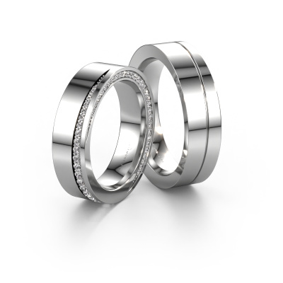 Qu'est-ce qui rend votre relation unique ? Qu'est-ce qui vous a fait décider de partager le reste de votre vie ensemble et de la continuer ensemble ? Ce lien unique que vous partagez ensemble peut être reflété dans une bague unique. Cet ensemble WH1002LM15DP avec des alliances uniques en or blanc est spécialement conçu pour vous, selon vos souhaits et vos rêves. Et c'est pourquoi ces bagues vous iront très bien ! Tous les détails de ces alliances en or blanc sont composés, mis à jour et polis à la main par notre orfèvre dans notre propre atelier. L'alliance pour hommes mesure ±6 mm de large, l'alliance pour femmes mesure ±6 mm de large, et leur finition est brillante. Pour l'alliance pour femmes, nous avons recherché les plus beaux diamants, selon vos goûts, et les avons sertis avec soin dans la bague pour femmes. Le résultat final est une magnifique bague, unique et parfaitement forgée dans les moindres détails ! C’est ce que recherchent absolument nos orfèvres !Dans notre équipe spécialisée, le créateur de bijoux crée votre alliance dans un dessin 3D. Si vous le souhaitez, vous pouvez également commander une alliance factice pour pouvoir la voir et l'ajuster à l’avance. Notre orfèvre travaillera ensuite à la main dans notre atelier pour fabriquer avec précision votre bague unique. Il effectuera un travail très soigné, car la fabrication et la finition nécessitent un oeil vif. Et voici la beauté de notre métier, car à la fin de notre travail votre alliance sera le fruit d’un véritable chef d'oeuvre accompli avec passion !Puisque nous concevons et livrons nos propres alliances, nous sommes en mesure de vous proposer une alliance à un prix que vous ne pourrez pas trouver ailleurs. Une alliance est fabriquée sur commande, ce qui permet d'éviter les excédents de matériel et nous permet de vous proposer une superbe offre de prix. Nous comprenons qu'acheter votre alliance en ligne soit un risque, mais nous vous assistons volontiers dans le processus de conception, en tenant compte de votre budget.Pour vous faciliter la tâche, vous pouvez facilement nous retourner tout bijou commandé dans les 30 jours suivant la livraison.