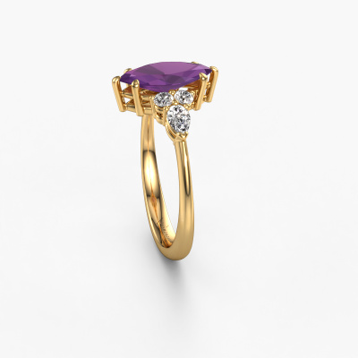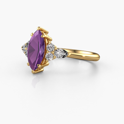 Cette bague de fiançailles porte le nom Melani MRQ. Cette bague de fiançailles forgée en or 14 Carat est sertie d’un améthyste de 11x5.5 mm. Qu'est-ce qui rend votre relation unique ? Qu'est-ce que qui fait que vous souhaitiez qu’elle devienne votre femmes ? Cet anneau unique que vous avez ensemble peut être reflété dans une bague unique. Une bague de fiançailles entourage unique qui est seulement créée pour elle. Et c'est la raison pour laquelle cette bague de fiançailles lui ira parfaitement. Chaque détail de cette bague de fiançailles ci-dessous forgée en or jaune sertie d’un améthyste est composée, travaillée et polie à la main par notre orfèvre dans notre atelier. Le résultat final est une magnifique bague de fiançailles, unique et parfaitement forgée dans les moindres détails ! Ce résultat est ce que nos orfèvres recherchent à tout prix ! Ce bijou est faite spécialement pour vous, avec une attention particulière portée aux détails et au design.Saviez-vous que nous offrons la garantie du meilleur prix pour votre bague de fiançailles? Cela est possible car tous nos bijoux sont fabriqués à la main dans notre propre atelier. Nous n'avons pas de frais de stocks qui sont coûteux, et nous fabriquons votre bague uniquement une fois que vous l'avez commandée. Grâce au fait que nous ayons toute la production du bijou en main, nous pouvons vous informer sur toutes les caractéristiques de cette bague de fiançailles. C’est précisément parce que l’achat d’une bague en ligne est une expérience excitante que nous comprenons qu’il est plus confortable pour vous de connaître toutes les caractéristiques de votre bague.Avez-vous déjà des bague de fiançailles spécifiques en tête ? Une bague de fiançailles que vous avez vu quelque part. N'hésitez pas à nous faire part de vos souhaits et nous transformerons votre design en des bague de fiançailles uniques. Vous êtes en mesure de suivre l'évolution de la conception de vos bague de fiançailles car nous utilisons des dessins en 3D. Cela vous donnera un aperçu réaliste de votre design. Nous vous enverrons volontiers une offre sans engagement basée sur un rapport qualité / prix juste. Elle va vous étonner.Pour vous faciliter la tâche, vous pouvez facilement nous retourner tout bijou commandé dans les 30 jours suivant la livraison.