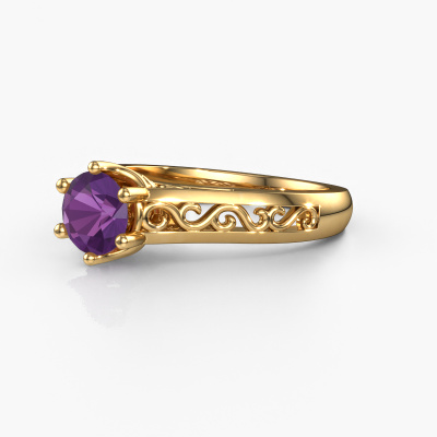 Nous avons donné le nom Shan à la bague de fiançailles mentionnée ci-dessous. Ce type de bague de fiançailles est appelée une bague de fiançailles solitaire car elle ne contient qu’une seule pierre précieuse. La bague de fiançailles est forgée en or 14 Carat et comporte un améthyste ronds d’une de 6 mm. L’avantage de notre outil de configuration est que vous pouvez choisir les éléments de votre propres bijou pour créer vous-même votre propre bijou. Cette bague de fiançailles solitaire est faite à partir d’une combinaison de métal précieux d’or et d’or jaune, mais vous pouvez également choisir un or d’une autre couleur. Chaque bijou est fabriquée par une équipe d'orfèvres et de designers motivés. Cela permettra à cette pièce unique d'attirer tous les regards. La bague de fiançailles solitaire est une large bague de fiançailles. C'est précisément grâce au fait que le sertissage de chaton soit ouvert que l'incidence de la lumière crée un effet magnifique sur la pierre précieuse. Puisque la pierre précieuse choisie est sertie en élévation sur la bague de fiançailles, cette bague de fiançailles Celtiques attirera tous les regards une loyautés finie. Nous fabriquerons tous les détails de cette bague de fiançailles solitaire avec le plus grand soin, afin que vous puissiez bientôt couronner votre demande en mariage avec une bague unique, en particulier pour l'amour de votre vie ! Qu'y a-t-il dorénavant de plus beau qu'une bague de fiançailles Celtiques conçue par vous-même et fabriquée à la main par nous. Vous pouvez personnaliser chaque modèle avec les différents métaux précieux et pierres précieuses. De cette façon, vous pourrez créer une bague de fiançailles unique. Cette bague peut être mise en place de plusieurs façons. Bien sûr, vous pouvez toujours nous contacter et nous serons heureux de vous aider à composer votre bague de fiançailles Celtiques Shan. Vous aimez le design, mais vous souhaitez tout de même quelque chose qui vous convienne plus, ou bien vous souhaitez une pierre précieuse dans les bijoux que vous ne pouvez pas choisir sur notre site, contactez-nous et nous vous aiderons.Avez-vous déjà des bague de fiançailles spécifiques en tête ? Une bague de fiançailles que vous avez vu quelque part. N'hésitez pas à nous faire part de vos souhaits et nous transformerons votre design en des bague de fiançailles uniques. Vous êtes en mesure de suivre l'évolution de la conception de vos bague de fiançailles car nous utilisons des dessins en 3D. Cela vous donnera un aperçu réaliste de votre design. Nous vous enverrons volontiers une offre sans engagement basée sur un rapport qualité / prix juste. Elle va vous étonner.Pour vous faciliter la tâche, vous pouvez facilement nous retourner tout bijou commandé dans les 30 jours suivant la livraison.