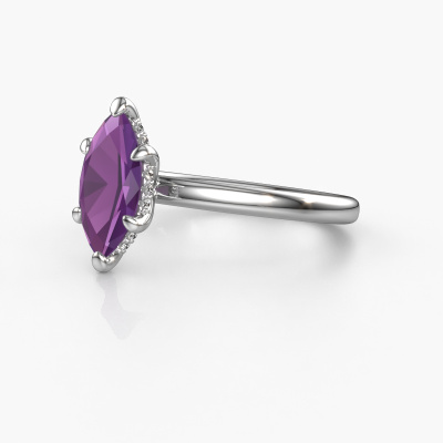 Cette bague de fiançailles porte le nom Simone MRQ 2. Cette bague de fiançailles forgée en or est sertie d’un améthyste de 11x5.5 mm. Qu'est-ce qui rend votre relation unique ? Qu'est-ce que qui fait que vous souhaitiez qu’elle devienne votre femmes ? Cet anneau unique que vous avez ensemble peut être reflété dans une bague unique. Une bague de fiançailles solitaire unique qui est seulement créée pour elle. Et c'est la raison pour laquelle cette bague de fiançailles lui ira parfaitement. Chaque détail de cette bague de fiançailles ci-dessous forgée en platine sertie d’un améthyste est composée, travaillée et polie à la main par notre orfèvre dans notre atelier. Le résultat final est une magnifique bague de fiançailles, unique et parfaitement forgée dans les moindres détails ! Ce résultat est ce que nos orfèvres recherchent à tout prix ! Ce bijou est fabriquée spécialement pour vous par nos maîtres orfèvres dans notre propre atelier.Puisque nous concevons et livrons nos propres bijoux, nous sommes en mesure de vous proposer une bague de fiançailles à un prix que vous ne pourrez pas trouver ailleurs. Une alliance est fabriquée sur commande, ce qui permet d'éviter les excédents de matériel et nous permet de vous proposer une superbe offre de prix. Nous comprenons qu'acheter votre bague de fiançailles en ligne soit un risque, mais nous vous assistons volontiers dans le processus de conception, en tenant compte de votre budget.Notre équipe de designers talentueux et passionnés ajoute chaque jour de nouveaux modèles bague de fiançailles à notre collection en ligne. Notre objectif est de pouvoir vous offrir une grande variété de bijoux. N'hésitez pas à demander un devis si vous avez des souhaits spécifiques pour votre bague de fiançailles. Nous garantissons de vous faire une offre que vous ne pourrez pas refuser.Pour vous faciliter la tâche, vous pouvez facilement nous retourner tout bijou commandé dans les 30 jours suivant la livraison.