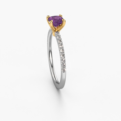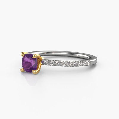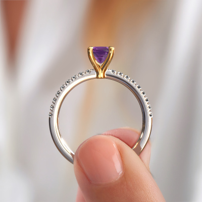 La bague de fiançailles mentionnée ci-dessus a été nommée Crystal CUS 2. Ce type de bague de fiançailles est appelé une bague de fiançailles solitaire pavé car elle ne comporte qu’une seule pierre centrale et les tiges de la bague de fiançailles sont également pleins. La bague de fiançailles est faite dans une combinaison d'or 14 Carat et d’or jaune et a un améthyste coussin d’une de 5 mm, et des diamants sont sertis sur les épaules de l’anneau. Chaque bijou est fabriquée spécialement pour vous par nos maîtres orfèvres dans notre propre atelier. Cette bague de fiançailles solitaire pavé forgée en or blanc classiques a un beau améthystes coussin comme pierre centrale, avec plus de améthystes sertis dans la bague pour accentuer encore plus la présence de la pierre centrale. Le sertissage à griffes autour du améthyste étant ouvert, le améthyste capte la lumière de tous les côtés et brille de manière optimale. Ci-dessus, vous pouvez voir comment notre orfèvre travaille la bague de fiançailles avec une extrême précision dans les moindres détails, de telle sorte que le améthyste élevé puisse attirer tous les regards. Quelle belle bague de fiançailles à offrir lors de votre demande en mariage à l'amour de votre vie, à votre centre rayonnant ! Nos orfèvres ne fabriqueront votre bague de fiançailles qu'une fois que vous l'aurez commandée. Nous ne faisons pas de stock. L'avantage de cela est que nous n'avons pas à inclure les frais de stockage dans nos prix, et nous pouvons donc vous offrir des bijoux à un prix très bas.Notre équipe ajoute quotidiennement de nouveaux modèles à notre collection en ligne. Nos designers et orfèvres travaillent ensemble pour créer le meilleur design. Nous nous efforçons d'offrir une collection diversifiée de bijoux. Peut-être avez-vous déjà en tête un bijou en particulier ? Un bijou que vous avez trouvé quelque part. Veuillez nous contacter pour une consultation gratuite. Nous vous ferons une offre, basée sur un rapport qualité / prix juste, qui vous déconcertera.Pour vous faciliter la tâche, vous pouvez facilement nous retourner tout bijou commandé dans les 30 jours suivant la livraison.