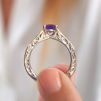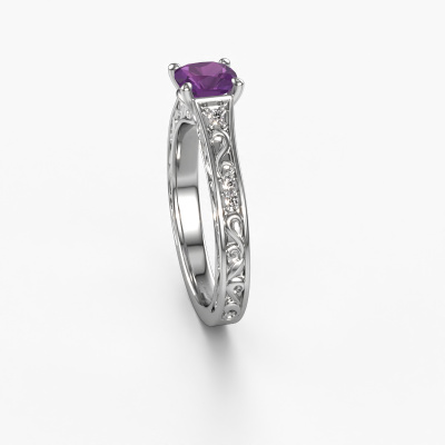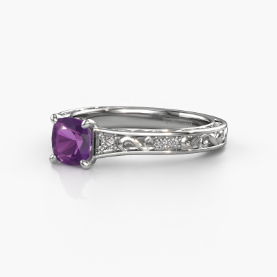 Nous avons donné le nom Mallory cus à la bague de fiançailles mentionnée ci-dessous. Ce type de bague de fiançailles est appelé une bague de fiançailles solitaire pavé car elle ne comporte qu’une seule pierre centrale et les tiges de la bague de fiançailles ont également une finition pleine. Cette bague de fiançailles est forgée en or 14 Carat et comporte un améthyste coussin de 5.5 mm. Des diamants sont sertis dans les épaules latérales de l’anneau. Chaque bijou est fabriquée spécialement pour vous par nos maîtres orfèvres dans notre propre atelier.. Cette bague de fiançailles solitaire pavé forgée en or blanc Celtiques a un beau améthyste coussin en guise de pierre centrale, avec plus de diamants dans l’anneau pour accentuer encore plus l’effet de la pierre centrale. Le sertissage à griffes autour du améthyste étant ouvert, le améthyste capte la lumière de tous les côtés et brille de manière optimale. Ci-dessus, vous pouvez voir comment notre orfèvre a travaillé la bague de fiançailles dans les moindres détails. de telle sorte que le améthyste élevé puisse véritablement attirer tous les regards. Quelle belle bague de fiançailles à offre lors de votre demande en mariage à l'amour de votre vie, à votre centre rayonnant ! Qu'y a-t-il dorénavant de plus beau qu'une bague de fiançailles Celtiques conçue par vous-même et fabriquée à la main par nous. Vous pouvez personnaliser chaque modèle avec les différents métaux précieux et pierres précieuses. De cette façon, vous pourrez créer une bague de fiançailles unique. Cette bague peut être mise en place de plusieurs façons. Bien sûr, vous pouvez toujours nous contacter et nous serons heureux de vous aider à composer votre bague de fiançailles Celtiques Mallory cus. Vous aimez le design, mais vous souhaitez tout de même quelque chose qui vous convienne plus, ou bien vous souhaitez une pierre précieuse dans les bijoux que vous ne pouvez pas choisir sur notre site, contactez-nous et nous vous aiderons.Notre équipe ajoute quotidiennement de nouveaux modèles à notre collection en ligne. Nos designers et orfèvres travaillent ensemble pour créer le meilleur design. Nous nous efforçons d'offrir une collection diversifiée de bijoux. Peut-être avez-vous déjà en tête un bijou en particulier ? Un bijou que vous avez trouvé quelque part. Veuillez nous contacter pour une consultation gratuite. Nous vous ferons une offre, basée sur un rapport qualité / prix juste, qui vous déconcertera.Pour vous faciliter la tâche, vous pouvez facilement nous retourner tout bijou commandé dans les 30 jours suivant la livraison.