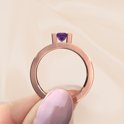 La bague de fiançailles mentionnée ci-dessus a été nommée Desire. Ce type de bague de fiançailles est appelé une bague de fiançailles solitaire pavé car elle ne comporte qu’une seule pierre centrale et les tiges de la bague de fiançailles sont également pleins. La bague de fiançailles est faite dans une combinaison d'or 14 Carat et d’or blanc et a un améthyste princesse d’une de 4 mm, et des diamants sont sertis sur les épaules de l’anneau. Chaque bijou est fabriquées spécialement pour vous par nos maîtres orfèvres dans notre propre atelier. Cette bague de fiançailles solitaire pavé forgée en or rose modernes a un beau améthystes princesse comme pierre centrale, avec plus de améthystes sertis dans la bague pour accentuer encore plus la présence de la pierre centrale. Le sertissage à griffes autour du améthyste étant ouvert, le améthyste capte la lumière de tous les côtés et brille de manière optimale. Ci-dessus, vous pouvez voir comment notre orfèvre travaille la bague de fiançailles avec une extrême précision dans les moindres détails, de telle sorte que le améthyste élevé puisse attirer tous les regards. Quelle belle bague de fiançailles à offrir lors de votre demande en mariage à l'amour de votre vie, à votre centre rayonnant ! En combinant les dernières techniques modernes, associées à une fabrication ancienne, nous sommes en mesure de fabriquer nos bagues de fiançailles dans notre propre studio. Chaque bijou est fabriqué sur commande. Ceci est avantageux car nous sommes en mesure de vous proposer un prix que vous ne trouverez nulle part ailleurs.Avez-vous déjà des bague de fiançailles spécifiques en tête ? Une bague de fiançailles que vous avez vu quelque part. N'hésitez pas à nous faire part de vos souhaits et nous transformerons votre design en des bague de fiançailles uniques. Vous êtes en mesure de suivre l'évolution de la conception de vos bague de fiançailles car nous utilisons des dessins en 3D. Cela vous donnera un aperçu réaliste de votre design. Nous vous enverrons volontiers une offre sans engagement basée sur un rapport qualité / prix juste. Elle va vous étonner.Pour vous faciliter la tâche, vous pouvez facilement nous retourner tout bijou commandé dans les 30 jours suivant la livraison.
