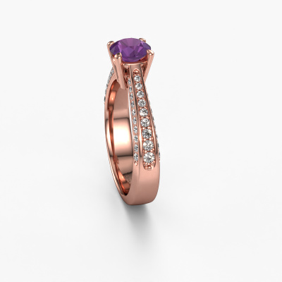 Nous avons donné le nom Ruby rnd à la bague de fiançailles mentionnée ci-dessous. Ce type de bague de fiançailles est appelé une bague de fiançailles solitaire pavé car elle ne comporte qu’une seule pierre centrale et les tiges de la bague de fiançailles ont également une finition pleine. Cette bague de fiançailles est forgée en or 14 Carat et comporte un améthyste ronds de 5.7 mm. Des diamants sont sertis dans les épaules latérales de l’anneau. Chaque bijou est faite spécialement pour vous, avec une attention particulière portée aux détails et au design.. Cette bague de fiançailles solitaire pavé forgée en or rose exclusives a un beau améthyste ronds en guise de pierre centrale, avec plus de diamants dans l’anneau pour accentuer encore plus l’effet de la pierre centrale. Le sertissage à griffes autour du améthyste étant ouvert, le améthyste capte la lumière de tous les côtés et brille de manière optimale. Ci-dessus, vous pouvez voir comment notre orfèvre a travaillé la bague de fiançailles dans les moindres détails. de telle sorte que le améthyste élevé puisse véritablement attirer tous les regards. Quelle belle bague de fiançailles à offre lors de votre demande en mariage à l'amour de votre vie, à votre centre rayonnant ! Puisque nous concevons et livrons nos propres bijoux, nous sommes en mesure de vous proposer une bague de fiançailles à un prix que vous ne pourrez pas trouver ailleurs. Une alliance est fabriquée sur commande, ce qui permet d'éviter les excédents de matériel et nous permet de vous proposer une superbe offre de prix. Nous comprenons qu'acheter votre bague de fiançailles en ligne soit un risque, mais nous vous assistons volontiers dans le processus de conception, en tenant compte de votre budget.Avez-vous déjà des bague de fiançailles spécifiques en tête ? Une bague de fiançailles que vous avez vu quelque part. N'hésitez pas à nous faire part de vos souhaits et nous transformerons votre design en des bague de fiançailles uniques. Vous êtes en mesure de suivre l'évolution de la conception de vos bague de fiançailles car nous utilisons des dessins en 3D. Cela vous donnera un aperçu réaliste de votre design. Nous vous enverrons volontiers une offre sans engagement basée sur un rapport qualité / prix juste. Elle va vous étonner.Pour vous faciliter la tâche, vous pouvez facilement nous retourner tout bijou commandé dans les 30 jours suivant la livraison.