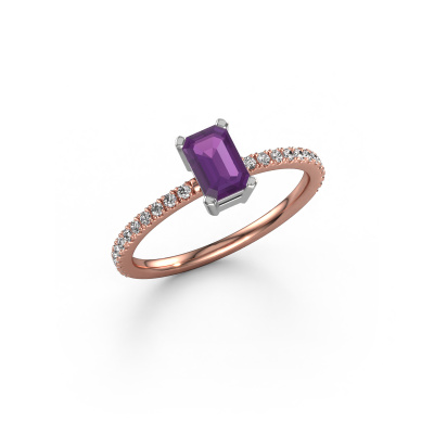 Nous avons donné le nom Denita 2 EME à la bague de fiançailles mentionnée ci-dessous. Ce type de bague de fiançailles est appelé une bague de fiançailles solitaire pavé car elle ne comporte qu’une seule pierre centrale et les tiges de la bague de fiançailles ont également une finition pleine. Cette bague de fiançailles est forgée en or 14 Carat et comporte un améthyste taille émeraude de 6x4 mm. Des diamants sont sertis dans les épaules latérales de l’anneau. Chaque bijou est fabriquée spécialement pour vous par nos maîtres orfèvres dans notre propre atelier.. Cette bague de fiançailles solitaire pavé forgée en or rose traditionnelles a un beau améthyste taille émeraude en guise de pierre centrale, avec plus de diamants dans l’anneau pour accentuer encore plus l’effet de la pierre centrale. Le sertissage à griffes autour du améthyste étant ouvert, le améthyste capte la lumière de tous les côtés et brille de manière optimale. Ci-dessus, vous pouvez voir comment notre orfèvre a travaillé la bague de fiançailles dans les moindres détails. de telle sorte que le améthyste élevé puisse véritablement attirer tous les regards. Quelle belle bague de fiançailles à offre lors de votre demande en mariage à l'amour de votre vie, à votre centre rayonnant ! Vous avez peut-être remarqué que nos prix sont en moyenne inférieurs de 30% à ceux d'un autre bijoutier. Et ce alors que la qualité de nos bijoux est même plus élevée dans la plupart des cas ! En effet, nos orfèvres fabriquent votre bague de fiançailles directement dans notre propre atelier. Cela signifie que nous n'avons pas à inclure des frais de stocks coûteux et que nous pouvons travailler n'importe quel détail directement sur votre bague de fiançailles.Notre équipe ajoute quotidiennement de nouveaux modèles à notre collection en ligne. Nos designers et orfèvres travaillent ensemble pour créer le meilleur design. Nous nous efforçons d'offrir une collection diversifiée de bijoux. Peut-être avez-vous déjà en tête un bijou en particulier ? Un bijou que vous avez trouvé quelque part. Veuillez nous contacter pour une consultation gratuite. Nous vous ferons une offre, basée sur un rapport qualité / prix juste, qui vous déconcertera.Pour vous faciliter la tâche, vous pouvez facilement nous retourner tout bijou commandé dans les 30 jours suivant la livraison.
