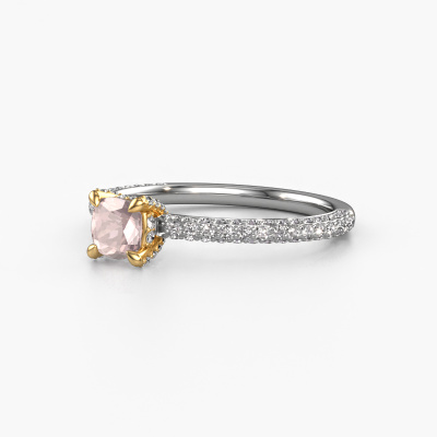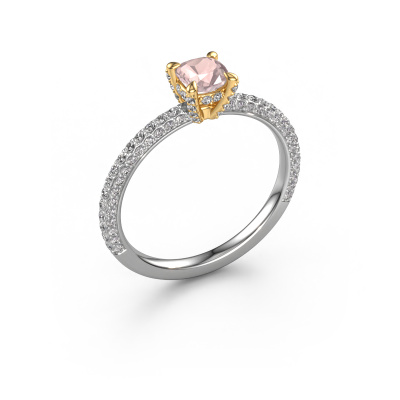 La bague de fiançailles mentionnée ci-dessus a été nommée Saskia 2 cus. Ce type de bague de fiançailles est appelé une bague de fiançailles solitaire pavé car elle ne comporte qu’une seule pierre centrale et les tiges de la bague de fiançailles sont également pleins. La bague de fiançailles est faite dans une combinaison d'or 14 Carat et d’or jaune et a un champagne morganite coussin d’une de 4.5 mm, et des diamants synthétiques sont sertis sur les épaules de l’anneau. Chaque bijou est faite spécialement pour vous, avec une attention particulière portée aux détails et au design. Cette bague de fiançailles solitaire pavé forgée en or blanc contemporains a un beau champagne morganite coussin comme pierre centrale, avec plus de champagne morganite sertis dans la bague pour accentuer encore plus la présence de la pierre centrale. Le sertissage à griffes autour du champagne morganite étant ouvert, le champagne morganite capte la lumière de tous les côtés et brille de manière optimale. Ci-dessus, vous pouvez voir comment notre orfèvre travaille la bague de fiançailles avec une extrême précision dans les moindres détails, de telle sorte que le champagne morganite élevé puisse attirer tous les regards. Quelle belle bague de fiançailles à offrir lors de votre demande en mariage à l'amour de votre vie, à votre centre rayonnant ! Vous avez peut-être remarqué que nos prix sont en moyenne inférieurs de 30% à ceux d'un autre bijoutier. Et ce alors que la qualité de nos bijoux est même plus élevée dans la plupart des cas ! En effet, nos orfèvres fabriquent votre bague de fiançailles directement dans notre propre atelier. Cela signifie que nous n'avons pas à inclure des frais de stocks coûteux et que nous pouvons travailler n'importe quel détail directement sur votre bague de fiançailles.Notre équipe de designers talentueux et passionnés ajoute chaque jour de nouveaux modèles bague de fiançailles à notre collection en ligne. Notre objectif est de pouvoir vous offrir une grande variété de bijoux. N'hésitez pas à demander un devis si vous avez des souhaits spécifiques pour votre bague de fiançailles. Nous garantissons de vous faire une offre que vous ne pourrez pas refuser.Pour vous faciliter la tâche, vous pouvez facilement nous retourner tout bijou commandé dans les 30 jours suivant la livraison.