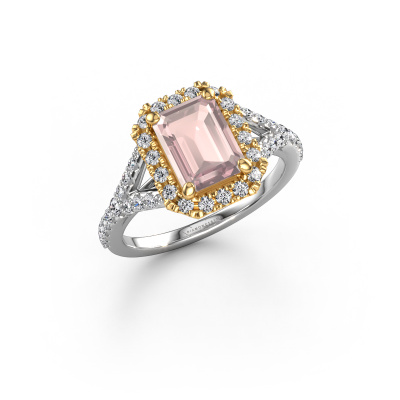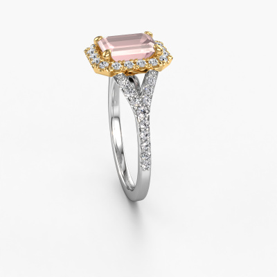 La bague de fiançailles mentionnée ci-dessus a été nommée Kimber EME. Ce type de bague de fiançailles est appelé une bague de fiançailles solitaire pavé car elle ne comporte qu’une seule pierre centrale et les tiges de la bague de fiançailles sont également pleins. La bague de fiançailles est faite dans une combinaison d'or 14 Carat et d’or jaune et a un champagne morganite taille émeraude d’une de 8x6 mm, et des diamants synthétiques sont sertis sur les épaules de l’anneau. Chaque bijou est fabriquée par une équipe d'orfèvres et de designers motivés. Cela permettra à cette pièce unique d'attirer tous les regards. Cette bague de fiançailles solitaire pavé forgée en or blanc exclusives a un beau champagne morganite taille émeraude comme pierre centrale, avec plus de champagne morganite sertis dans la bague pour accentuer encore plus la présence de la pierre centrale. Le sertissage à griffes autour du champagne morganite étant ouvert, le champagne morganite capte la lumière de tous les côtés et brille de manière optimale. Ci-dessus, vous pouvez voir comment notre orfèvre travaille la bague de fiançailles avec une extrême précision dans les moindres détails, de telle sorte que le champagne morganite élevé puisse attirer tous les regards. Quelle belle bague de fiançailles à offrir lors de votre demande en mariage à l'amour de votre vie, à votre centre rayonnant ! En combinant les dernières techniques modernes, associées à une fabrication ancienne, nous sommes en mesure de fabriquer nos bagues de fiançailles dans notre propre studio. Chaque bijou est fabriqué sur commande. Ceci est avantageux car nous sommes en mesure de vous proposer un prix que vous ne trouverez nulle part ailleurs.Notre équipe ajoute quotidiennement de nouveaux modèles à notre collection en ligne. Nos designers et orfèvres travaillent ensemble pour créer le meilleur design. Nous nous efforçons d'offrir une collection diversifiée de bijoux. Peut-être avez-vous déjà en tête un bijou en particulier ? Un bijou que vous avez trouvé quelque part. Veuillez nous contacter pour une consultation gratuite. Nous vous ferons une offre, basée sur un rapport qualité / prix juste, qui vous déconcertera.Pour vous faciliter la tâche, vous pouvez facilement nous retourner tout bijou commandé dans les 30 jours suivant la livraison.