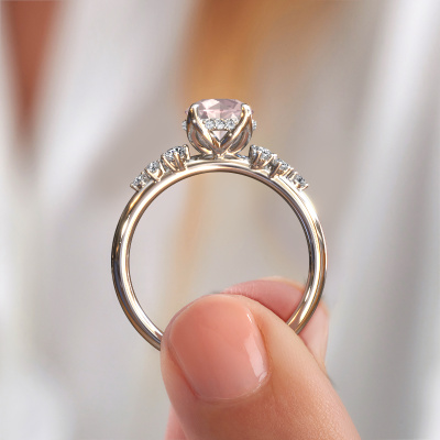 Le nom de cette bague de fiançailles est Emma RND. Elle est forgée en or 14 Carat et est sertie d'un champagne morganite de 6.5 mm. Comment décririez-vous le style de l'amour de votre vie ? Est-ce qu'elle aime quelque chose qui est juste un peu plus différent que d'habitude ? Cette bague de fiançailles forgée en or blanc avec raffinées est une superbe bague que vous pouvez personnaliser à votre guise. Un champagne morganite est utilisé dans cette bague de fiançailles fantaisie. Ces champagne morganite ont été sélectionnés avec soin, car nous pensons que sur votre bague de fiançailles, seule les plus belle pierre précieuses peuvent y briller, n'est-ce pas ? Ce bijou est fabriquée spécialement pour vous par nos maîtres orfèvres dans notre propre atelier.Qu'y a-t-il dorénavant de plus beau qu'une bague de fiançailles fantaisie conçue par vous-même et fabriquée à la main par nous. Vous pouvez personnaliser chaque modèle avec les différents métaux précieux et pierres précieuses. De cette façon, vous pourrez créer une bague de fiançailles unique. Cette bague peut être mise en place de plusieurs façons. Bien sûr, vous pouvez toujours nous contacter et nous serons heureux de vous aider à composer votre bague de fiançailles fantaisie Emma RND. Vous aimez le design, mais vous souhaitez tout de même quelque chose qui vous convienne plus, ou bien vous souhaitez une pierre précieuse dans les bijoux que vous ne pouvez pas choisir sur notre site, contactez-nous et nous vous aiderons. Avez-vous déjà des bague de fiançailles spécifiques en tête ? Une bague de fiançailles que vous avez vu quelque part. N'hésitez pas à nous faire part de vos souhaits et nous transformerons votre design en des bague de fiançailles uniques. Vous êtes en mesure de suivre l'évolution de la conception de vos bague de fiançailles car nous utilisons des dessins en 3D. Cela vous donnera un aperçu réaliste de votre design. Nous vous enverrons volontiers une offre sans engagement basée sur un rapport qualité / prix juste. Elle va vous étonner.Pour vous faciliter la tâche, vous pouvez facilement nous retourner tout bijou commandé dans les 30 jours suivant la livraison.