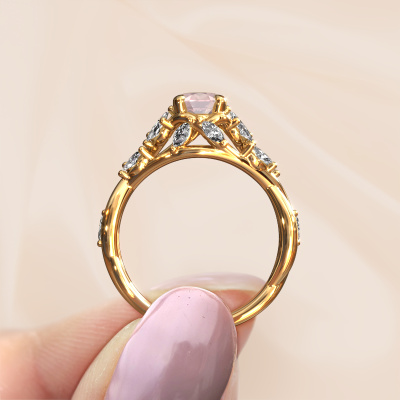 Cette bague de fiançailles porte le nom Samantha OVL. Cette bague de fiançailles forgée en or 14 Carat est sertie d’un champagne morganite de 7,5x5,5 mm. Qu'est-ce qui rend votre relation unique ? Qu'est-ce que qui fait que vous souhaitiez qu’elle devienne votre femmes ? Cet anneau unique que vous avez ensemble peut être reflété dans une bague unique. Une bague de fiançailles solitaire pavé unique qui est seulement créée pour elle. Et c'est la raison pour laquelle cette bague de fiançailles lui ira parfaitement. Chaque détail de cette bague de fiançailles ci-dessous forgée en or jaune sertie d’un champagne morganite est composée, travaillée et polie à la main par notre orfèvre dans notre atelier. Le résultat final est une magnifique bague de fiançailles, unique et parfaitement forgée dans les moindres détails ! Ce résultat est ce que nos orfèvres recherchent à tout prix ! Ce bijou est fabriquée spécialement pour vous par nos maîtres orfèvres dans notre propre atelier.Saviez-vous que nous offrons la garantie du meilleur prix pour votre bague de fiançailles? Cela est possible car tous nos bijoux sont fabriqués à la main dans notre propre atelier. Nous n'avons pas de frais de stocks qui sont coûteux, et nous fabriquons votre bague uniquement une fois que vous l'avez commandée. Grâce au fait que nous ayons toute la production du bijou en main, nous pouvons vous informer sur toutes les caractéristiques de cette bague de fiançailles. C’est précisément parce que l’achat d’une bague en ligne est une expérience excitante que nous comprenons qu’il est plus confortable pour vous de connaître toutes les caractéristiques de votre bague.Notre équipe ajoute quotidiennement de nouveaux modèles à notre collection en ligne. Nos designers et orfèvres travaillent ensemble pour créer le meilleur design. Nous nous efforçons d'offrir une collection diversifiée de bijoux. Peut-être avez-vous déjà en tête un bijou en particulier ? Un bijou que vous avez trouvé quelque part. Veuillez nous contacter pour une consultation gratuite. Nous vous ferons une offre, basée sur un rapport qualité / prix juste, qui vous déconcertera.Pour vous faciliter la tâche, vous pouvez facilement nous retourner tout bijou commandé dans les 30 jours suivant la livraison.