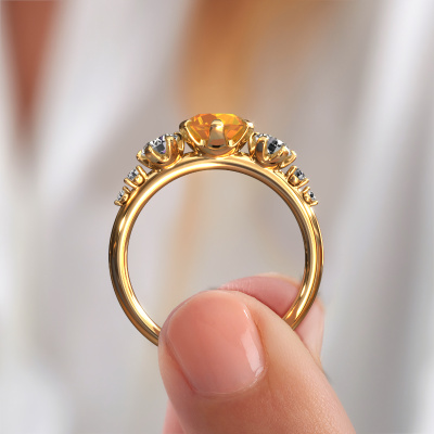 Le nom de cette bague de fiançailles est Aniek RND. Elle est forgée en or 14 Carat et est sertie d'un citrine de 6.5 mm. Comment décririez-vous le style de l'amour de votre vie ? Est-ce qu'elle aime quelque chose qui est juste un peu plus différent que d'habitude ? Cette bague de fiançailles forgée en or jaune avec élégants est une superbe bague que vous pouvez personnaliser à votre guise. Un citrine est utilisé dans cette bague de fiançailles fantaisie. Ces citrines ont été sélectionnés avec soin, car nous pensons que sur votre bague de fiançailles, seule les plus belle pierre précieuses peuvent y briller, n'est-ce pas ? Ce bijou est fabriquée spécialement pour vous par nos maîtres orfèvres dans notre propre atelier.Vous avez peut-être remarqué que nos prix sont en moyenne inférieurs de 30% à ceux d'un autre bijoutier. Et ce alors que la qualité de nos bijoux est même plus élevée dans la plupart des cas ! En effet, nos orfèvres fabriquent votre bague de fiançailles directement dans notre propre atelier. Cela signifie que nous n'avons pas à inclure des frais de stocks coûteux et que nous pouvons travailler n'importe quel détail directement sur votre bague de fiançailles. Avez-vous déjà des bague de fiançailles spécifiques en tête ? Une bague de fiançailles que vous avez vu quelque part. N'hésitez pas à nous faire part de vos souhaits et nous transformerons votre design en des bague de fiançailles uniques. Vous êtes en mesure de suivre l'évolution de la conception de vos bague de fiançailles car nous utilisons des dessins en 3D. Cela vous donnera un aperçu réaliste de votre design. Nous vous enverrons volontiers une offre sans engagement basée sur un rapport qualité / prix juste. Elle va vous étonner.Pour vous faciliter la tâche, vous pouvez facilement nous retourner tout bijou commandé dans les 30 jours suivant la livraison.