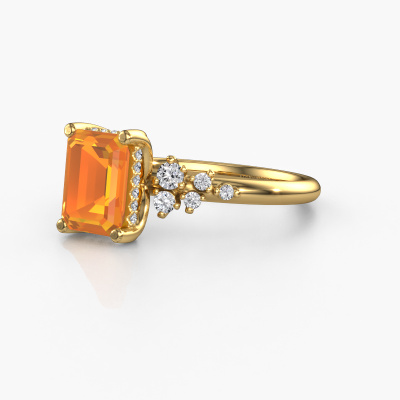 Nous avons donné le nom Emma EME à la bague de fiançailles mentionnée ci-dessous. Ce type de bague de fiançailles est appelé une bague de fiançailles solitaire pavé car elle ne comporte qu’une seule pierre centrale et les tiges de la bague de fiançailles ont également une finition pleine. Cette bague de fiançailles est forgée en or 14 Carat et comporte un citrine taille émeraude de 8x6 mm. Des diamants synthétiques sont sertis dans les épaules latérales de l’anneau. Chaque bijou est faite avec passion et amour par l'un de nos maîtres orfèvres.. Cette bague de fiançailles solitaire pavé forgée en or jaune fantaisie a un beau citrine taille émeraude en guise de pierre centrale, avec plus de diamants synthétiques dans l’anneau pour accentuer encore plus l’effet de la pierre centrale. Le sertissage à griffes autour du citrine étant ouvert, le citrine capte la lumière de tous les côtés et brille de manière optimale. Ci-dessus, vous pouvez voir comment notre orfèvre a travaillé la bague de fiançailles dans les moindres détails. de telle sorte que le citrine élevé puisse véritablement attirer tous les regards. Quelle belle bague de fiançailles à offre lors de votre demande en mariage à l'amour de votre vie, à votre centre rayonnant ! Saviez-vous que nous offrons la garantie du meilleur prix pour votre bague de fiançailles? Cela est possible car tous nos bijoux sont fabriqués à la main dans notre propre atelier. Nous n'avons pas de frais de stocks qui sont coûteux, et nous fabriquons votre bague uniquement une fois que vous l'avez commandée. Grâce au fait que nous ayons toute la production du bijou en main, nous pouvons vous informer sur toutes les caractéristiques de cette bague de fiançailles. C’est précisément parce que l’achat d’une bague en ligne est une expérience excitante que nous comprenons qu’il est plus confortable pour vous de connaître toutes les caractéristiques de votre bague.Notre équipe ajoute quotidiennement de nouveaux modèles à notre collection en ligne. Nos designers et orfèvres travaillent ensemble pour créer le meilleur design. Nous nous efforçons d'offrir une collection diversifiée de bijoux. Peut-être avez-vous déjà en tête un bijou en particulier ? Un bijou que vous avez trouvé quelque part. Veuillez nous contacter pour une consultation gratuite. Nous vous ferons une offre, basée sur un rapport qualité / prix juste, qui vous déconcertera.Pour vous faciliter la tâche, vous pouvez facilement nous retourner tout bijou commandé dans les 30 jours suivant la livraison.