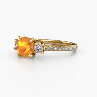 Cette bague de fiançailles porte le nom Jesica. Cette bague de fiançailles forgée en or 14 Carat est sertie d’un citrine de 6.8 mm. Qu'est-ce qui rend votre relation unique ? Qu'est-ce que qui fait que vous souhaitiez qu’elle devienne votre femmes ? Cet anneau unique que vous avez ensemble peut être reflété dans une bague unique. Une bague de fiançailles trois pierres unique qui est seulement créée pour elle. Et c'est la raison pour laquelle cette bague de fiançailles lui ira parfaitement. Chaque détail de cette bague de fiançailles ci-dessous forgée en or jaune sertie d’un citrine est composée, travaillée et polie à la main par notre orfèvre dans notre atelier. Le résultat final est une magnifique bague de fiançailles, unique et parfaitement forgée dans les moindres détails ! Ce résultat est ce que nos orfèvres recherchent à tout prix ! Ce bijou est faite spécialement pour vous, avec une attention particulière portée aux détails et au design.Saviez-vous que nous offrons la garantie du meilleur prix pour votre bague de fiançailles? Cela est possible car tous nos bijoux sont fabriqués à la main dans notre propre atelier. Nous n'avons pas de frais de stocks qui sont coûteux, et nous fabriquons votre bague uniquement une fois que vous l'avez commandée. Grâce au fait que nous ayons toute la production du bijou en main, nous pouvons vous informer sur toutes les caractéristiques de cette bague de fiançailles. C’est précisément parce que l’achat d’une bague en ligne est une expérience excitante que nous comprenons qu’il est plus confortable pour vous de connaître toutes les caractéristiques de votre bague.Notre équipe ajoute quotidiennement de nouveaux modèles à notre collection en ligne. Nos designers et orfèvres travaillent ensemble pour créer le meilleur design. Nous nous efforçons d'offrir une collection diversifiée de bijoux. Peut-être avez-vous déjà en tête un bijou en particulier ? Un bijou que vous avez trouvé quelque part. Veuillez nous contacter pour une consultation gratuite. Nous vous ferons une offre, basée sur un rapport qualité / prix juste, qui vous déconcertera.Pour vous faciliter la tâche, vous pouvez facilement nous retourner tout bijou commandé dans les 30 jours suivant la livraison.