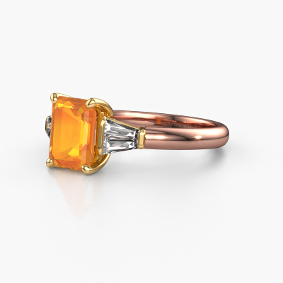 Le nom de cette bague de fiançailles est Kina EME. Elle est forgée en or 14 Carat et est sertie d'un citrine de 8x6 mm. Comment décririez-vous le style de l'amour de votre vie ? Est-ce qu'elle aime quelque chose qui est juste un peu plus différent que d'habitude ? Cette bague de fiançailles forgée en or rose avec spéciales est une superbe bague que vous pouvez personnaliser à votre guise. Un citrine est utilisé dans cette bague de fiançailles exclusives. Ces citrines ont été sélectionnés avec soin, car nous pensons que sur votre bague de fiançailles, seule les plus belle pierre précieuses peuvent y briller, n'est-ce pas ? Ce bijou est fabriquée par une équipe d'orfèvres et de designers motivés. Cela permettra à cette pièce unique d'attirer tous les regards.Vous avez peut-être remarqué que nos prix sont en moyenne inférieurs de 30% à ceux d'un autre bijoutier. Et ce alors que la qualité de nos bijoux est même plus élevée dans la plupart des cas ! En effet, nos orfèvres fabriquent votre bague de fiançailles directement dans notre propre atelier. Cela signifie que nous n'avons pas à inclure des frais de stocks coûteux et que nous pouvons travailler n'importe quel détail directement sur votre bague de fiançailles. Avez-vous déjà des bague de fiançailles spécifiques en tête ? Une bague de fiançailles que vous avez vu quelque part. N'hésitez pas à nous faire part de vos souhaits et nous transformerons votre design en des bague de fiançailles uniques. Vous êtes en mesure de suivre l'évolution de la conception de vos bague de fiançailles car nous utilisons des dessins en 3D. Cela vous donnera un aperçu réaliste de votre design. Nous vous enverrons volontiers une offre sans engagement basée sur un rapport qualité / prix juste. Elle va vous étonner.Pour vous faciliter la tâche, vous pouvez facilement nous retourner tout bijou commandé dans les 30 jours suivant la livraison.