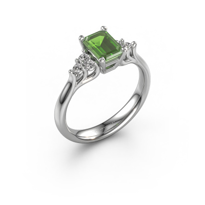 Nous avons donné le nom Monika EME à la bague de fiançailles mentionnée ci-dessous. Ce type de bague de fiançailles s'appelle une bague de fiançailles Solitaire car elle ne contient qu’une seule pierre précieuse. La bague de fiançailles est forgée en or 14 Carat et comporte un vert tourmaline taille émeraude d’une de 7x5 mm. Cette belle bague de fiançailles solitaire forgée en or blanc classiques est ornée d'un magnifique vert tourmaline taille émeraude qui rendra votre demande en mariage très spéciale. Le sertissage chaton ouvert crée un magnifique effet de lumière sur le diamants. Saviez-vous que le diamants symbolise l'amour et la fidélité éternels ? C'est précisément la raison pour laquelle c'est une magnifique pierre précieuse à mettre au centre. Notre orfèvre place la pierre précieuse en élévation sur la bague, ce qui la fera attirer tous les regards. Chaque bijou est fabriquées spécialement pour vous par nos maîtres orfèvres dans notre propre atelier.Qu'y a-t-il dorénavant de plus beau qu'une bague de fiançailles classiques conçue par vous-même et fabriquée à la main par nous. Vous pouvez personnaliser chaque modèle avec les différents métaux précieux et pierres précieuses. De cette façon, vous pourrez créer une bague de fiançailles unique. Cette bague peut être mise en place de plusieurs façons. Bien sûr, vous pouvez toujours nous contacter et nous serons heureux de vous aider à composer votre bague de fiançailles classiques Monika EME. Vous aimez le design, mais vous souhaitez tout de même quelque chose qui vous convienne plus, ou bien vous souhaitez une pierre précieuse dans les bijoux que vous ne pouvez pas choisir sur notre site, contactez-nous et nous vous aiderons.Notre équipe ajoute quotidiennement de nouveaux modèles à notre collection en ligne. Nos designers et orfèvres travaillent ensemble pour créer le meilleur design. Nous nous efforçons d'offrir une collection diversifiée de bijoux. Peut-être avez-vous déjà en tête un bijou en particulier ? Un bijou que vous avez trouvé quelque part. Veuillez nous contacter pour une consultation gratuite. Nous vous ferons une offre, basée sur un rapport qualité / prix juste, qui vous déconcertera.Pour vous faciliter la tâche, vous pouvez facilement nous retourner tout bijou commandé dans les 30 jours suivant la livraison.
