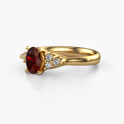 Le nom de cette bague de fiançailles est Monika OVL. Elle est forgée en or 14 Carat et est sertie d'un grenat de 7x5 mm. Êtes-vous à la recherche d'une bague de fiançailles forgée en or jaune classiques que vous pourrez adapter à votre goût ? Un grenat est utilisé dans cette bague de fiançailles classiques. Celui-ci a été soigneusement sélectionné pour créer le plus bel effet. Notre orfèvre fabrique votre bague de fiançailles dans notre propre atelier et sertit le grenat dans l'anneau avec une précision extrême. Donc, la bague est travaillée et polie jusqu'à ce que le résultat soit visible : la bague de fiançailles parfaite pour l'amour de votre vie ! Ce bijou est unique, car vous pouvez concevoir ces bagues en fonction de vos souhaits.Vous avez peut-être remarqué que nos prix sont en moyenne inférieurs de 30% à ceux d'un autre bijoutier. Et ce alors que la qualité de nos bijoux est même plus élevée dans la plupart des cas ! En effet, nos orfèvres fabriquent votre bague de fiançailles directement dans notre propre atelier. Cela signifie que nous n'avons pas à inclure des frais de stocks coûteux et que nous pouvons travailler n'importe quel détail directement sur votre bague de fiançailles.Notre équipe ajoute quotidiennement de nouveaux modèles à notre collection en ligne. Nos designers et orfèvres travaillent ensemble pour créer le meilleur design. Nous nous efforçons d'offrir une collection diversifiée de bijoux. Peut-être avez-vous déjà en tête un bijou en particulier ? Un bijou que vous avez trouvé quelque part. Veuillez nous contacter pour une consultation gratuite. Nous vous ferons une offre, basée sur un rapport qualité / prix juste, qui vous déconcertera.Pour vous faciliter la tâche, vous pouvez facilement nous retourner tout bijou commandé dans les 30 jours suivant la livraison.