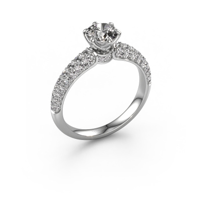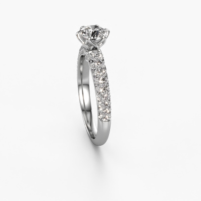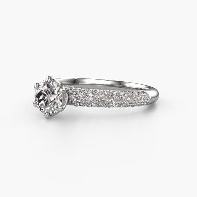Nous avons donné le nom Meryl à la bague de fiançailles mentionnée ci-dessous. Ce type de bague de fiançailles est appelé une bague de fiançailles solitaire pavé car elle ne comporte qu’une seule pierre centrale et les tiges de la bague de fiançailles ont également une finition pleine. Cette bague de fiançailles est forgée en or 14 Carat et comporte un diamant custom ronds de 5.7 mm. Des diamants sont sertis dans les épaules latérales de l’anneau. Chaque bijou est faite spécialement pour vous, avec une attention particulière portée aux détails et au design.. Cette bague de fiançailles solitaire pavé forgée en or blanc exclusives a un beau diamant custom ronds en guise de pierre centrale, avec plus de diamants dans l’anneau pour accentuer encore plus l’effet de la pierre centrale. Le sertissage à griffes autour du diamant custom étant ouvert, le diamant custom capte la lumière de tous les côtés et brille de manière optimale. Ci-dessus, vous pouvez voir comment notre orfèvre a travaillé la bague de fiançailles dans les moindres détails. de telle sorte que le diamant custom élevé puisse véritablement attirer tous les regards. Quelle belle bague de fiançailles à offre lors de votre demande en mariage à l'amour de votre vie, à votre centre rayonnant ! Saviez-vous que nous offrons la garantie du meilleur prix pour votre bague de fiançailles? Cela est possible car tous nos bijoux sont fabriqués à la main dans notre propre atelier. Nous n'avons pas de frais de stocks qui sont coûteux, et nous fabriquons votre bague uniquement une fois que vous l'avez commandée. Grâce au fait que nous ayons toute la production du bijou en main, nous pouvons vous informer sur toutes les caractéristiques de cette bague de fiançailles. C’est précisément parce que l’achat d’une bague en ligne est une expérience excitante que nous comprenons qu’il est plus confortable pour vous de connaître toutes les caractéristiques de votre bague.Avez-vous déjà des bague de fiançailles spécifiques en tête ? Une bague de fiançailles que vous avez vu quelque part. N'hésitez pas à nous faire part de vos souhaits et nous transformerons votre design en des bague de fiançailles uniques. Vous êtes en mesure de suivre l'évolution de la conception de vos bague de fiançailles car nous utilisons des dessins en 3D. Cela vous donnera un aperçu réaliste de votre design. Nous vous enverrons volontiers une offre sans engagement basée sur un rapport qualité / prix juste. Elle va vous étonner.Pour vous faciliter la tâche, vous pouvez facilement nous retourner tout bijou commandé dans les 30 jours suivant la livraison.
