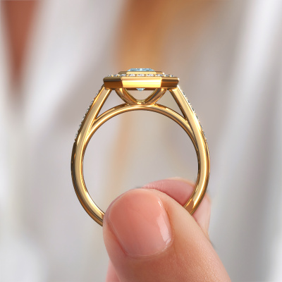 Le nom de cette bague de fiançailles est Noud 2 RAD. Elle est forgée en or 14 Carat et est sertie d'un diamant synthétique bleu de 7x5 mm. Comment décririez-vous le style de l'amour de votre vie ? Est-ce qu'elle aime quelque chose qui est juste un peu plus différent que d'habitude ? Cette bague de fiançailles forgée en or jaune avec spéciales est une superbe bague que vous pouvez personnaliser à votre guise. Un diamant synthétique bleu est utilisé dans cette bague de fiançailles exclusives. Ces diamant synthétique bleu ont été sélectionnés avec soin, car nous pensons que sur votre bague de fiançailles, seule les plus belle pierre précieuses peuvent y briller, n'est-ce pas ? Ce bijou est fabriquée spécialement pour vous par nos maîtres orfèvres dans notre propre atelier.En combinant les dernières techniques modernes, associées à une fabrication ancienne, nous sommes en mesure de fabriquer nos bagues de fiançailles dans notre propre studio. Chaque bijou est fabriqué sur commande. Ceci est avantageux car nous sommes en mesure de vous proposer un prix que vous ne trouverez nulle part ailleurs. Notre équipe de designers talentueux et passionnés ajoute chaque jour de nouveaux modèles bague de fiançailles à notre collection en ligne. Notre objectif est de pouvoir vous offrir une grande variété de bijoux. N'hésitez pas à demander un devis si vous avez des souhaits spécifiques pour votre bague de fiançailles. Nous garantissons de vous faire une offre que vous ne pourrez pas refuser.Pour vous faciliter la tâche, vous pouvez facilement nous retourner tout bijou commandé dans les 30 jours suivant la livraison.