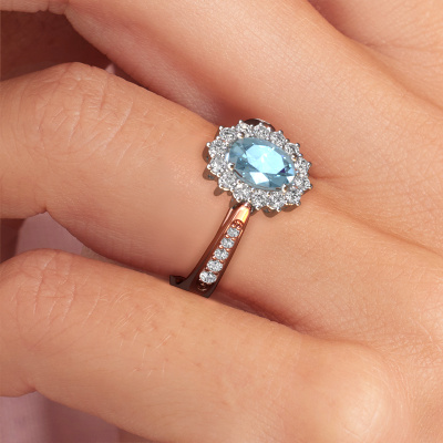La bague de fiançailles mentionnée ci-dessus a pour nom Margien 2. Nous appelons ce type de bague de fiançailles Lady Diana, dans laquelle des petites pierres précieuses sont placées autour de la pierre centrale dans un sertissage ouvert. Cette bague en or 14 Carat a un diamant synthétique bleu ovale de 7x5 mm en tant que pierre centrale qui est entourée par de petits diamants. Vous la connaissez, cette belle bague de fiançailles en or rose Lady Diana et traditionnelles... la plus connue et dont on a le plus parlé dans le monde, pour la plus grande personne dans votre vie ! Ce qui est spécial au sujet de cette bague de fiançailles Lady Diana est le magnifique diamant synthétique bleu serti au centre. Les petites pierres précieuses sont serties sur la bague de fiançailles pour renforcer grâce à l'éclat du diamant synthétique bleu comme pierre centrale, ce qui vous fait penser que vous portez un grand bijou. Avec conception de cette bague de fiançailles style Lady Di, cet effet est encore plus renforcé. La largeur est que nos orfèvres travaillent cette bague de fiançailles pour la rendre aussi unique que vous. Puisque nous forgeons la bague de fiançailles Lady Diana à la main dans notre propre atelier, nous pouvons la personnaliser exactement comme vous l'avez à l'esprit. Ce bijou est faite pour briller sur votre doigt, chaque bijou est fabriqué à la main par nos orfèvres. Vous avez peut-être remarqué que nos prix sont en moyenne inférieurs de 30% à ceux d'un autre bijoutier. Et ce alors que la qualité de nos bijoux est même plus élevée dans la plupart des cas ! En effet, nos orfèvres fabriquent votre bague de fiançailles directement dans notre propre atelier. Cela signifie que nous n'avons pas à inclure des frais de stocks coûteux et que nous pouvons travailler n'importe quel détail directement sur votre bague de fiançailles. Notre équipe ajoute quotidiennement de nouveaux modèles à notre collection en ligne. Nos designers et orfèvres travaillent ensemble pour créer le meilleur design. Nous nous efforçons d'offrir une collection diversifiée de bijoux. Peut-être avez-vous déjà en tête un bijou en particulier ? Un bijou que vous avez trouvé quelque part. Veuillez nous contacter pour une consultation gratuite. Nous vous ferons une offre, basée sur un rapport qualité / prix juste, qui vous déconcertera. Pour vous faciliter la tâche, vous pouvez facilement nous retourner tout bijou commandé dans les 30 jours suivant la livraison.