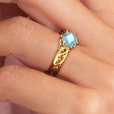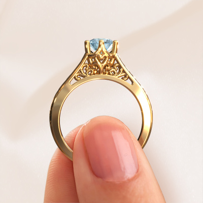 Nous avons donné le nom Shan à la bague de fiançailles mentionnée ci-dessous. Ce type de bague de fiançailles est appelée une bague de fiançailles solitaire car elle ne contient qu’une seule pierre précieuse. La bague de fiançailles est forgée en or 14 Carat et comporte un diamant synthétique bleu ronds d’une de 6 mm. L’avantage de notre outil de configuration est que vous pouvez choisir les éléments de votre propres bijou pour créer vous-même votre propre bijou. Cette bague de fiançailles solitaire est faite à partir d’une combinaison de métal précieux d’or et d’or jaune, mais vous pouvez également choisir un or d’une autre couleur. Chaque bijou est fabriquée par une équipe d'orfèvres et de designers motivés. Cela permettra à cette pièce unique d'attirer tous les regards. La bague de fiançailles solitaire est une large bague de fiançailles. C'est précisément grâce au fait que le sertissage de chaton soit ouvert que l'incidence de la lumière crée un effet magnifique sur la pierre précieuse. Puisque la pierre précieuse choisie est sertie en élévation sur la bague de fiançailles, cette bague de fiançailles Celtiques attirera tous les regards une loyautés finie. Nous fabriquerons tous les détails de cette bague de fiançailles solitaire avec le plus grand soin, afin que vous puissiez bientôt couronner votre demande en mariage avec une bague unique, en particulier pour l'amour de votre vie ! Qu'y a-t-il dorénavant de plus beau qu'une bague de fiançailles Celtiques conçue par vous-même et fabriquée à la main par nous. Vous pouvez personnaliser chaque modèle avec les différents métaux précieux et pierres précieuses. De cette façon, vous pourrez créer une bague de fiançailles unique. Cette bague peut être mise en place de plusieurs façons. Bien sûr, vous pouvez toujours nous contacter et nous serons heureux de vous aider à composer votre bague de fiançailles Celtiques Shan. Vous aimez le design, mais vous souhaitez tout de même quelque chose qui vous convienne plus, ou bien vous souhaitez une pierre précieuse dans les bijoux que vous ne pouvez pas choisir sur notre site, contactez-nous et nous vous aiderons.Avez-vous déjà des bague de fiançailles spécifiques en tête ? Une bague de fiançailles que vous avez vu quelque part. N'hésitez pas à nous faire part de vos souhaits et nous transformerons votre design en des bague de fiançailles uniques. Vous êtes en mesure de suivre l'évolution de la conception de vos bague de fiançailles car nous utilisons des dessins en 3D. Cela vous donnera un aperçu réaliste de votre design. Nous vous enverrons volontiers une offre sans engagement basée sur un rapport qualité / prix juste. Elle va vous étonner.Pour vous faciliter la tâche, vous pouvez facilement nous retourner tout bijou commandé dans les 30 jours suivant la livraison.