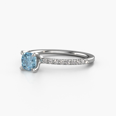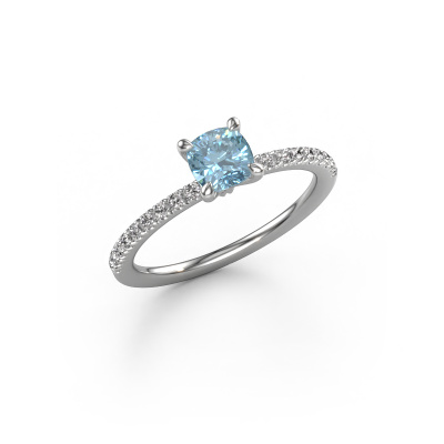 La bague de fiançailles mentionnée ci-dessus a été nommée Crystal CUS 2. Ce type de bague de fiançailles est appelé une bague de fiançailles solitaire pavé car elle ne comporte qu’une seule pierre centrale et les tiges de la bague de fiançailles sont également pleins. La bague de fiançailles est faite dans une combinaison d'or et d’platine et a un diamant synthétique bleu coussin d’une de 5 mm, et des diamants sont sertis sur les épaules de l’anneau. Chaque bijou est fabriquée spécialement pour vous par nos maîtres orfèvres dans notre propre atelier. Cette bague de fiançailles solitaire pavé forgée en platine classiques a un beau diamant synthétique bleu coussin comme pierre centrale, avec plus de diamant synthétique bleu sertis dans la bague pour accentuer encore plus la présence de la pierre centrale. Le sertissage à griffes autour du diamant synthétique bleu étant ouvert, le diamant synthétique bleu capte la lumière de tous les côtés et brille de manière optimale. Ci-dessus, vous pouvez voir comment notre orfèvre travaille la bague de fiançailles avec une extrême précision dans les moindres détails, de telle sorte que le diamant synthétique bleu élevé puisse attirer tous les regards. Quelle belle bague de fiançailles à offrir lors de votre demande en mariage à l'amour de votre vie, à votre centre rayonnant ! Nos orfèvres ne fabriqueront votre bague de fiançailles qu'une fois que vous l'aurez commandée. Nous ne faisons pas de stock. L'avantage de cela est que nous n'avons pas à inclure les frais de stockage dans nos prix, et nous pouvons donc vous offrir des bijoux à un prix très bas.Notre équipe ajoute quotidiennement de nouveaux modèles à notre collection en ligne. Nos designers et orfèvres travaillent ensemble pour créer le meilleur design. Nous nous efforçons d'offrir une collection diversifiée de bijoux. Peut-être avez-vous déjà en tête un bijou en particulier ? Un bijou que vous avez trouvé quelque part. Veuillez nous contacter pour une consultation gratuite. Nous vous ferons une offre, basée sur un rapport qualité / prix juste, qui vous déconcertera.Pour vous faciliter la tâche, vous pouvez facilement nous retourner tout bijou commandé dans les 30 jours suivant la livraison.