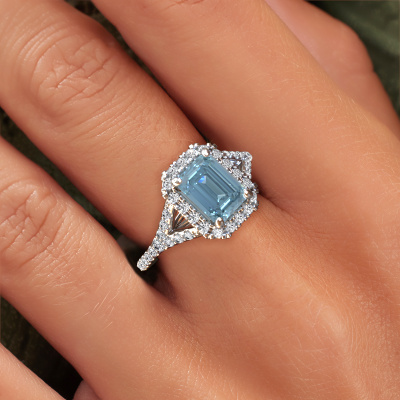 La bague de fiançailles mentionnée ci-dessus a été nommée Kimber EME. Ce type de bague de fiançailles est appelé une bague de fiançailles solitaire pavé car elle ne comporte qu’une seule pierre centrale et les tiges de la bague de fiançailles sont également pleins. La bague de fiançailles est faite dans une combinaison d'or et d’platine et a un diamant synthétique bleu taille émeraude d’une de 8x6 mm, et des diamants synthétiques sont sertis sur les épaules de l’anneau. Chaque bijou est fabriquée par une équipe d'orfèvres et de designers motivés. Cela permettra à cette pièce unique d'attirer tous les regards. Cette bague de fiançailles solitaire pavé forgée en platine exclusives a un beau diamant synthétique bleu taille émeraude comme pierre centrale, avec plus de diamant synthétique bleu sertis dans la bague pour accentuer encore plus la présence de la pierre centrale. Le sertissage à griffes autour du diamant synthétique bleu étant ouvert, le diamant synthétique bleu capte la lumière de tous les côtés et brille de manière optimale. Ci-dessus, vous pouvez voir comment notre orfèvre travaille la bague de fiançailles avec une extrême précision dans les moindres détails, de telle sorte que le diamant synthétique bleu élevé puisse attirer tous les regards. Quelle belle bague de fiançailles à offrir lors de votre demande en mariage à l'amour de votre vie, à votre centre rayonnant ! En combinant les dernières techniques modernes, associées à une fabrication ancienne, nous sommes en mesure de fabriquer nos bagues de fiançailles dans notre propre studio. Chaque bijou est fabriqué sur commande. Ceci est avantageux car nous sommes en mesure de vous proposer un prix que vous ne trouverez nulle part ailleurs.Notre équipe ajoute quotidiennement de nouveaux modèles à notre collection en ligne. Nos designers et orfèvres travaillent ensemble pour créer le meilleur design. Nous nous efforçons d'offrir une collection diversifiée de bijoux. Peut-être avez-vous déjà en tête un bijou en particulier ? Un bijou que vous avez trouvé quelque part. Veuillez nous contacter pour une consultation gratuite. Nous vous ferons une offre, basée sur un rapport qualité / prix juste, qui vous déconcertera.Pour vous faciliter la tâche, vous pouvez facilement nous retourner tout bijou commandé dans les 30 jours suivant la livraison.