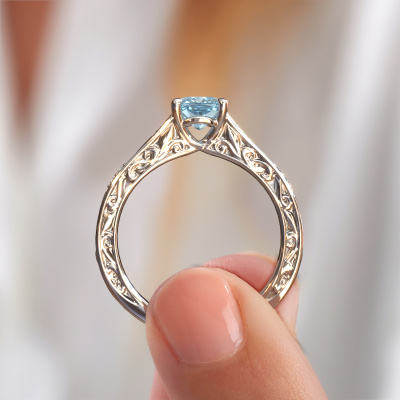 Nous avons donné le nom Mallory cus à la bague de fiançailles mentionnée ci-dessous. Ce type de bague de fiançailles est appelé une bague de fiançailles solitaire pavé car elle ne comporte qu’une seule pierre centrale et les tiges de la bague de fiançailles ont également une finition pleine. Cette bague de fiançailles est forgée en or et comporte un diamant synthétique bleu coussin de 5.5 mm. Des diamants sont sertis dans les épaules latérales de l’anneau. Chaque bijou est fabriquée spécialement pour vous par nos maîtres orfèvres dans notre propre atelier.. Cette bague de fiançailles solitaire pavé forgée en platine Celtiques a un beau diamant synthétique bleu coussin en guise de pierre centrale, avec plus de diamants dans l’anneau pour accentuer encore plus l’effet de la pierre centrale. Le sertissage à griffes autour du diamant synthétique bleu étant ouvert, le diamant synthétique bleu capte la lumière de tous les côtés et brille de manière optimale. Ci-dessus, vous pouvez voir comment notre orfèvre a travaillé la bague de fiançailles dans les moindres détails. de telle sorte que le diamant synthétique bleu élevé puisse véritablement attirer tous les regards. Quelle belle bague de fiançailles à offre lors de votre demande en mariage à l'amour de votre vie, à votre centre rayonnant ! Qu'y a-t-il dorénavant de plus beau qu'une bague de fiançailles Celtiques conçue par vous-même et fabriquée à la main par nous. Vous pouvez personnaliser chaque modèle avec les différents métaux précieux et pierres précieuses. De cette façon, vous pourrez créer une bague de fiançailles unique. Cette bague peut être mise en place de plusieurs façons. Bien sûr, vous pouvez toujours nous contacter et nous serons heureux de vous aider à composer votre bague de fiançailles Celtiques Mallory cus. Vous aimez le design, mais vous souhaitez tout de même quelque chose qui vous convienne plus, ou bien vous souhaitez une pierre précieuse dans les bijoux que vous ne pouvez pas choisir sur notre site, contactez-nous et nous vous aiderons.Notre équipe ajoute quotidiennement de nouveaux modèles à notre collection en ligne. Nos designers et orfèvres travaillent ensemble pour créer le meilleur design. Nous nous efforçons d'offrir une collection diversifiée de bijoux. Peut-être avez-vous déjà en tête un bijou en particulier ? Un bijou que vous avez trouvé quelque part. Veuillez nous contacter pour une consultation gratuite. Nous vous ferons une offre, basée sur un rapport qualité / prix juste, qui vous déconcertera.Pour vous faciliter la tâche, vous pouvez facilement nous retourner tout bijou commandé dans les 30 jours suivant la livraison.