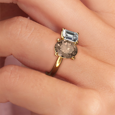Cette bague de fiançailles porte le nom Toi et Moi OVL-EME. Cette bague de fiançailles forgée en or 14 Carat est sertie d’un diamant brun de 2.70 crt. Qu'est-ce qui rend votre relation unique ? Qu'est-ce que qui fait que vous souhaitiez qu’elle devienne votre femmes ? Cet anneau unique que vous avez ensemble peut être reflété dans une bague unique. Une bague de fiançailles 2 pierres unique qui est seulement créée pour elle. Et c'est la raison pour laquelle cette bague de fiançailles lui ira parfaitement. Chaque détail de cette bague de fiançailles ci-dessous forgée en or jaune sertie d’un diamant brun est composée, travaillée et polie à la main par notre orfèvre dans notre atelier. Le résultat final est une magnifique bague de fiançailles, unique et parfaitement forgée dans les moindres détails ! Ce résultat est ce que nos orfèvres recherchent à tout prix ! Ce bijou est faite spécialement pour vous, avec une attention particulière portée aux détails et au design.Nos orfèvres ne fabriqueront votre bague de fiançailles qu'une fois que vous l'aurez commandée. Nous ne faisons pas de stock. L'avantage de cela est que nous n'avons pas à inclure les frais de stockage dans nos prix, et nous pouvons donc vous offrir des bijoux à un prix très bas.Notre équipe ajoute quotidiennement de nouveaux modèles à notre collection en ligne. Nos designers et orfèvres travaillent ensemble pour créer le meilleur design. Nous nous efforçons d'offrir une collection diversifiée de bijoux. Peut-être avez-vous déjà en tête un bijou en particulier ? Un bijou que vous avez trouvé quelque part. Veuillez nous contacter pour une consultation gratuite. Nous vous ferons une offre, basée sur un rapport qualité / prix juste, qui vous déconcertera.Pour vous faciliter la tâche, vous pouvez facilement nous retourner tout bijou commandé dans les 30 jours suivant la livraison.